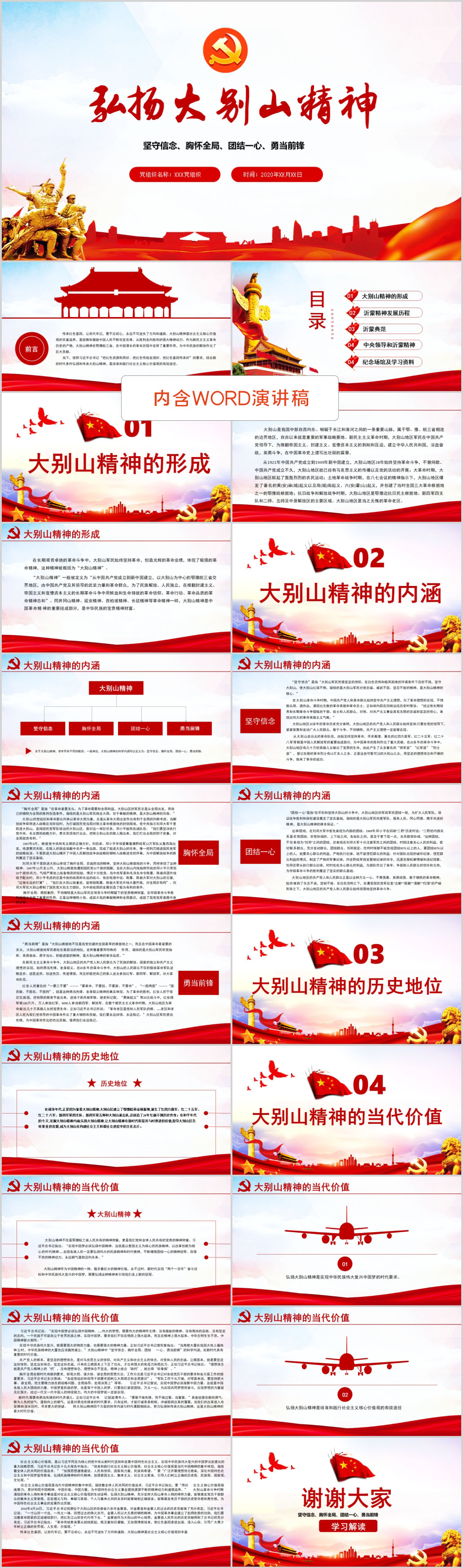 学习贯彻大别山精神在当代的价值与内涵微党课PPT模板(内含WORD演讲稿)