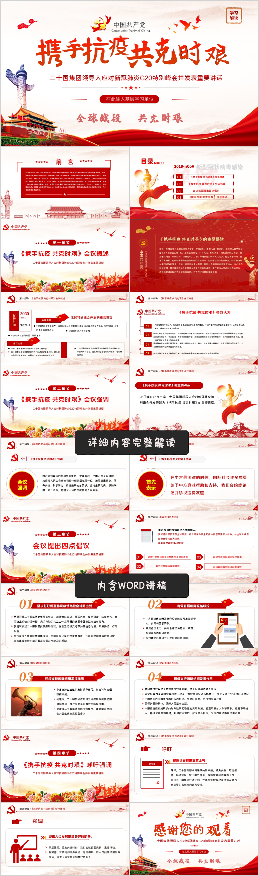 学习携手抗疫共克时艰弘扬全球抗疫精神党课PPT模板(含WORD演讲稿)
