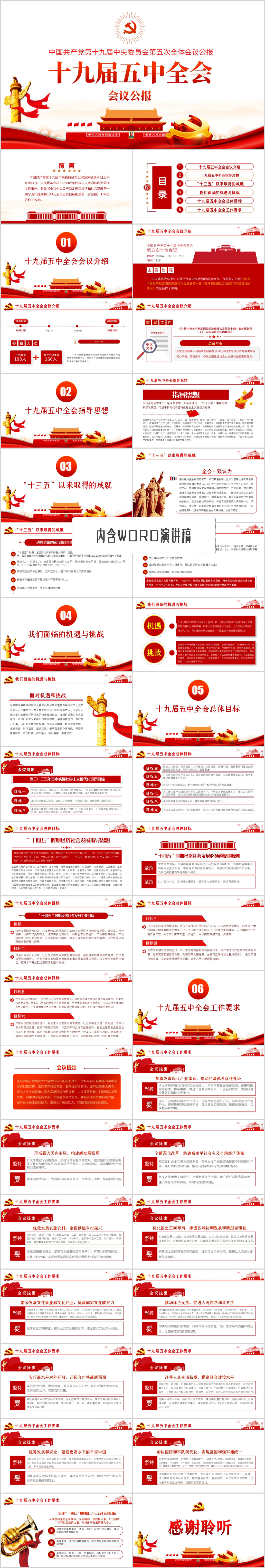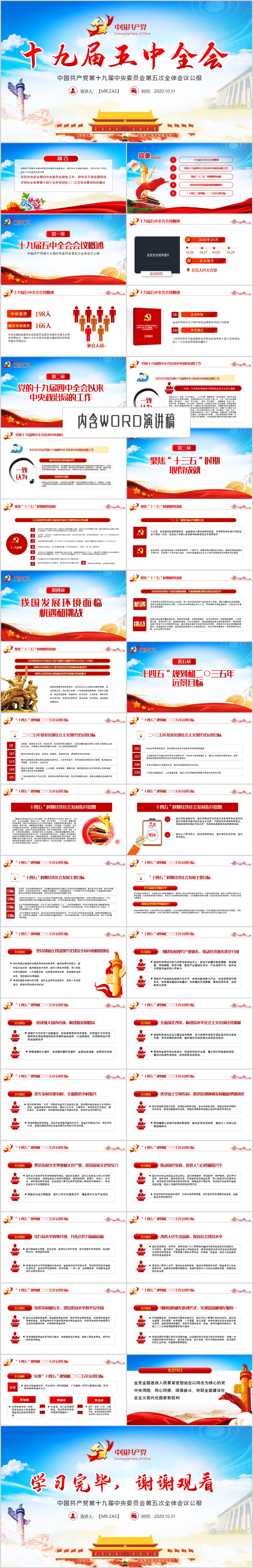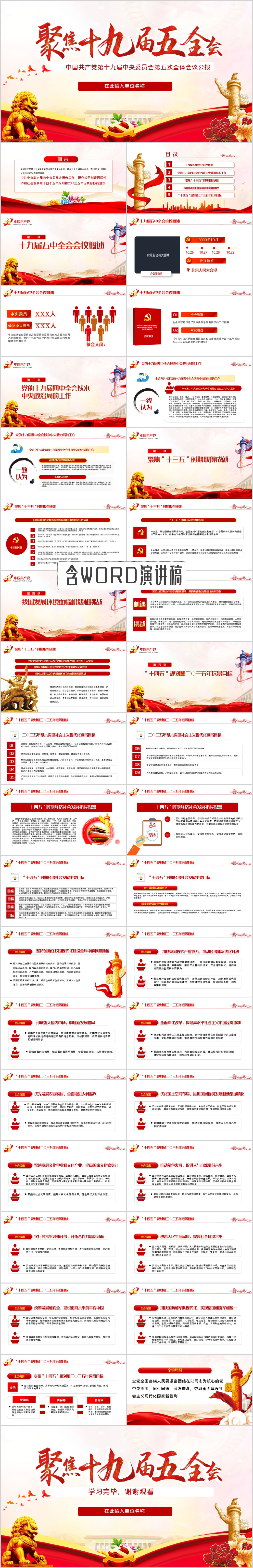 第十九届中央委员会第五次全体会议公报学习解读PPT模板(内含WORD演讲稿)