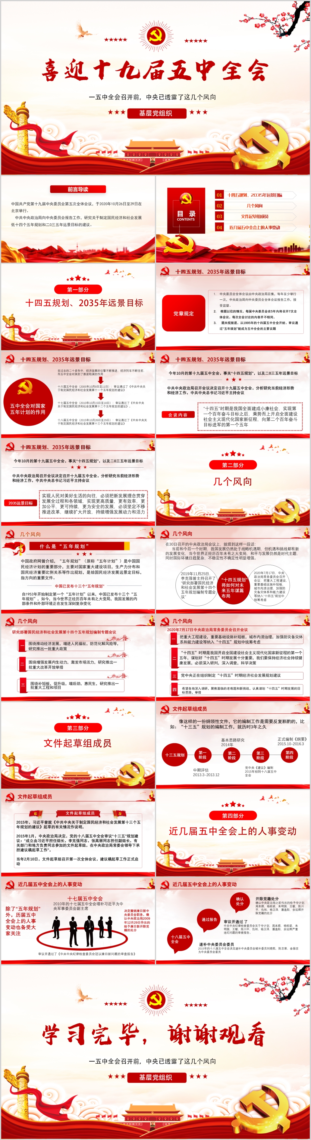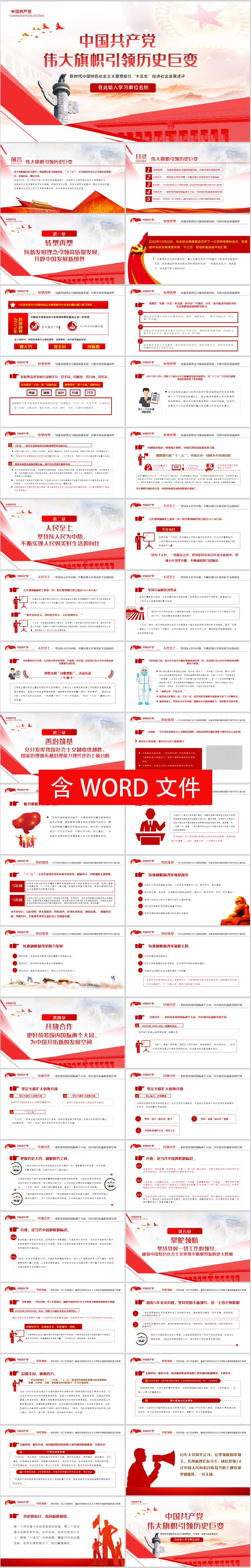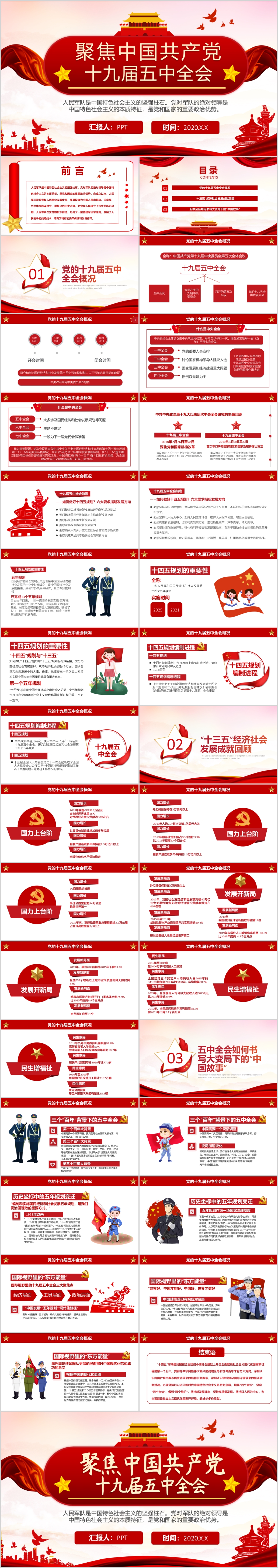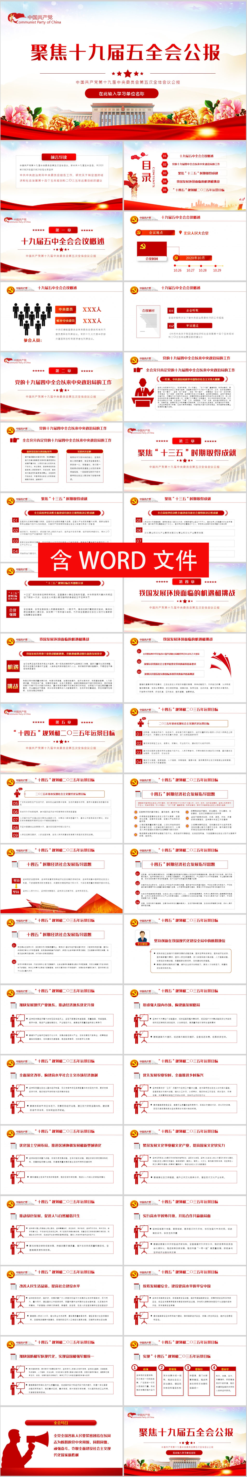 第十九届中央委员会第五次全体会议公报学习解读PPT模板(内含WORD演讲稿)