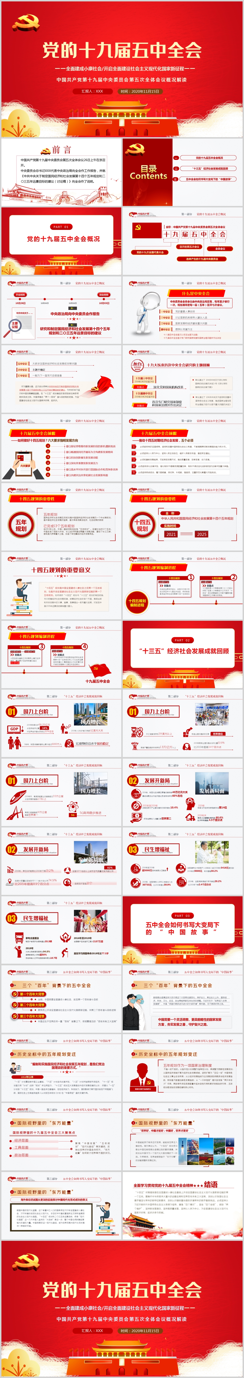 聚焦中国共产党第十九届五中全会学习解读党课PPT模板(内含WORD演讲稿)