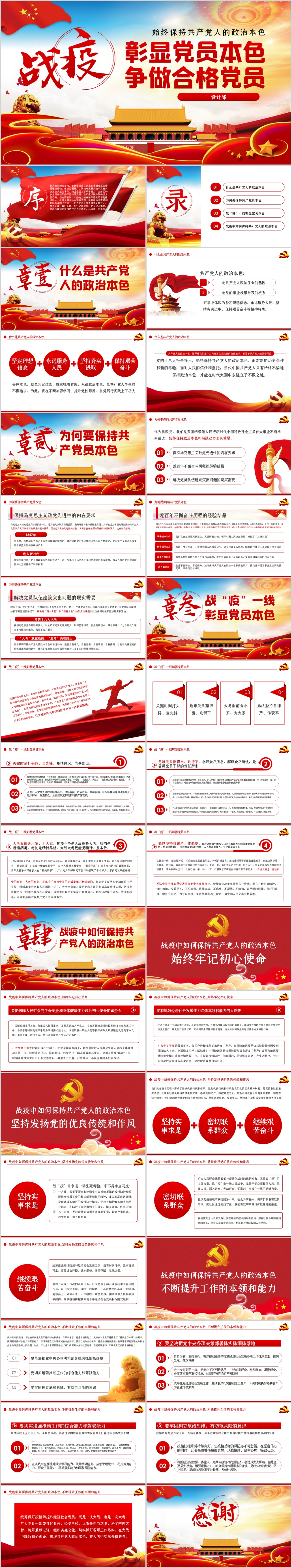 战疫中展现共产党人政治本色争做合格党员党课ppt模板