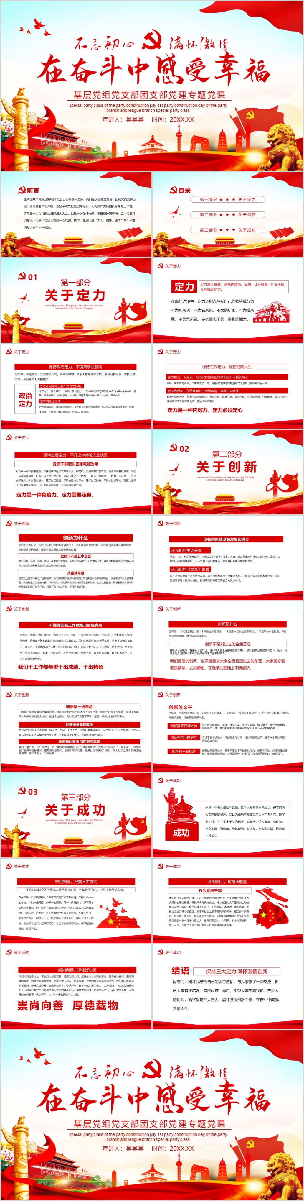 学习基层组织党课培训不忘初心满怀激情在奋斗中感受幸福党课PPT模板