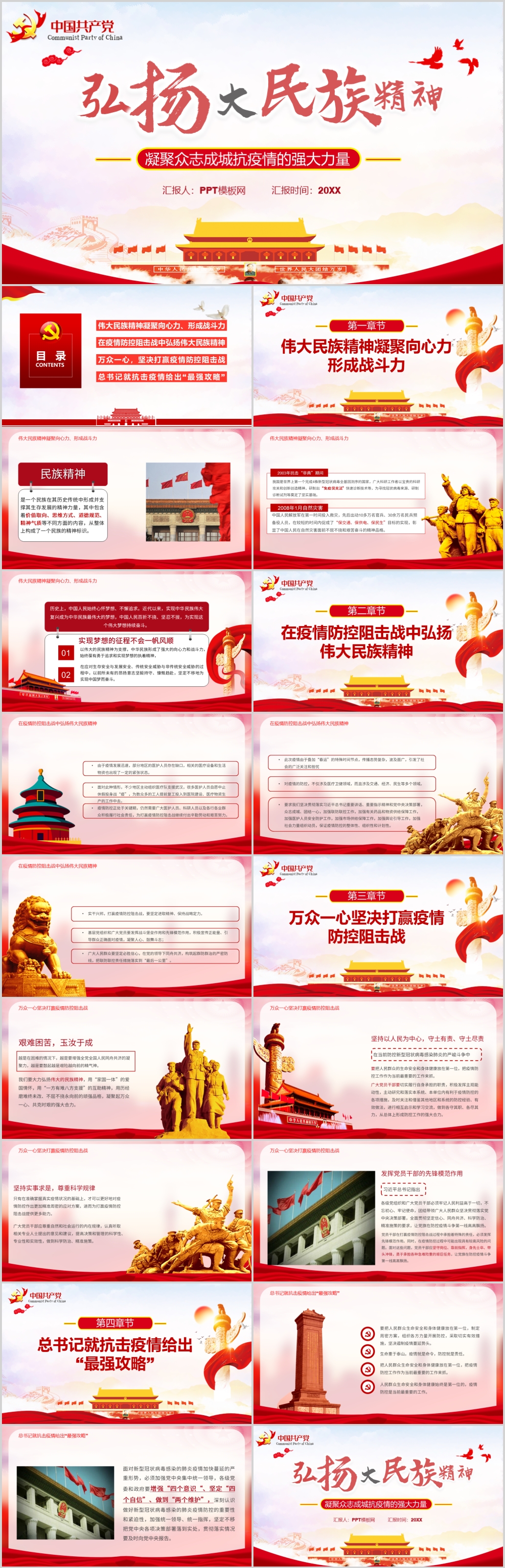【战疫情精神】凝聚众志成城抗疫情的强大力量弘扬大民族精神党课PPT模板
