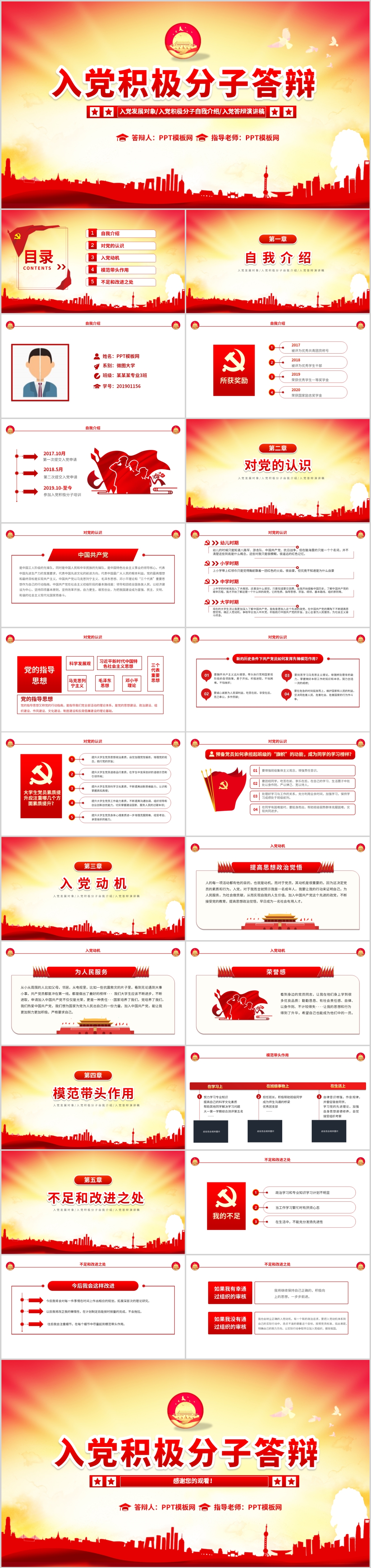 基层入党发展对象入党积极分子自我介绍入党答辩ppt模板
