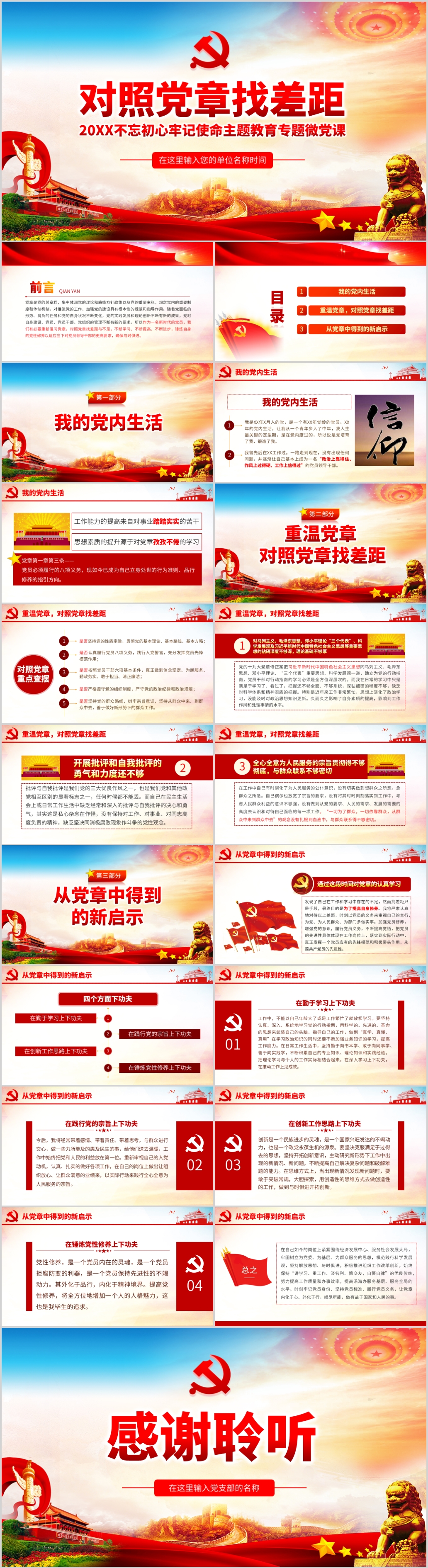 对照党章找差距不忘初心牢记使命主题教育专题微党课PPT模板