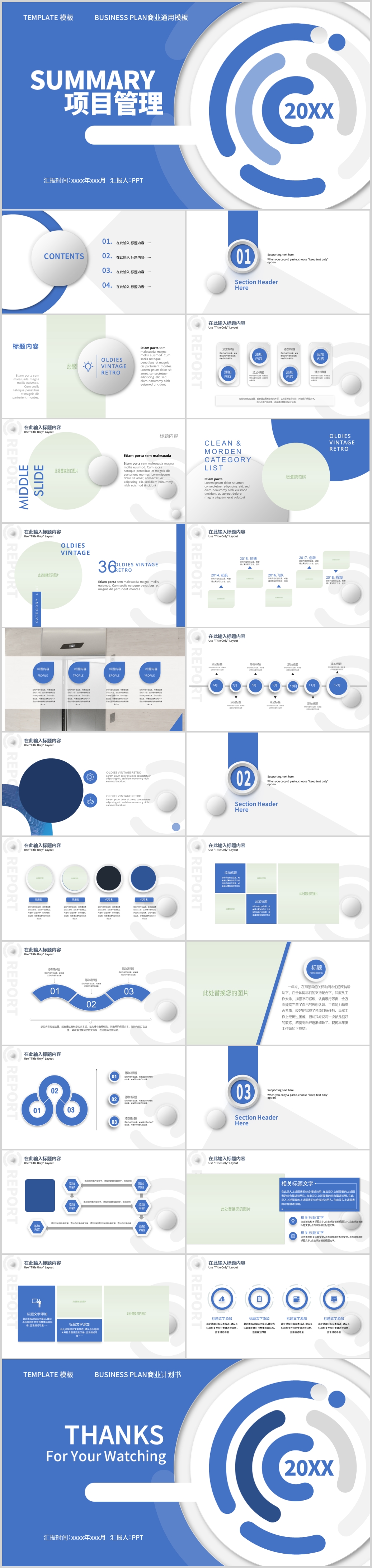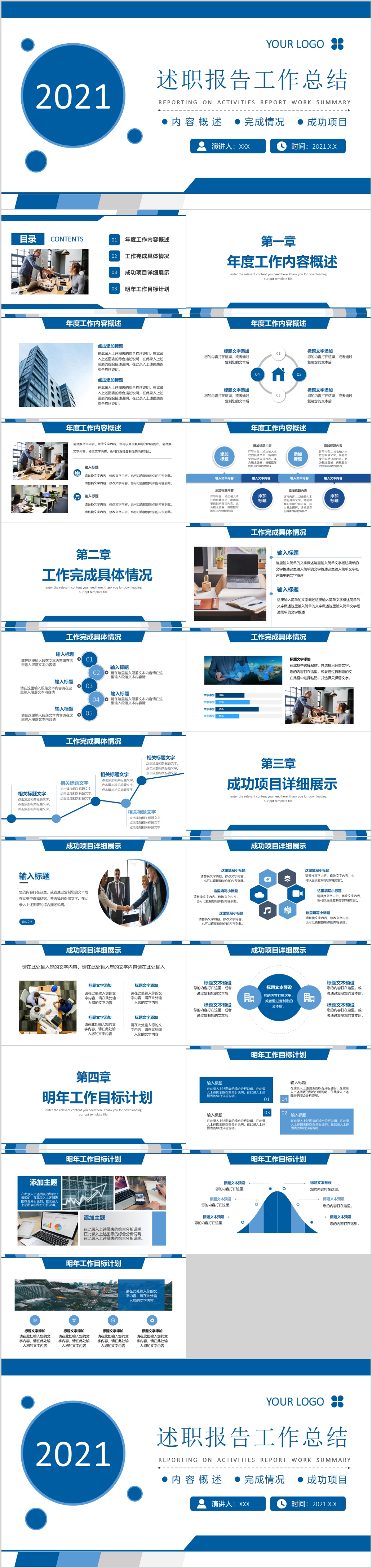 蓝色大气简约工作总结计划商务通用PPT模板