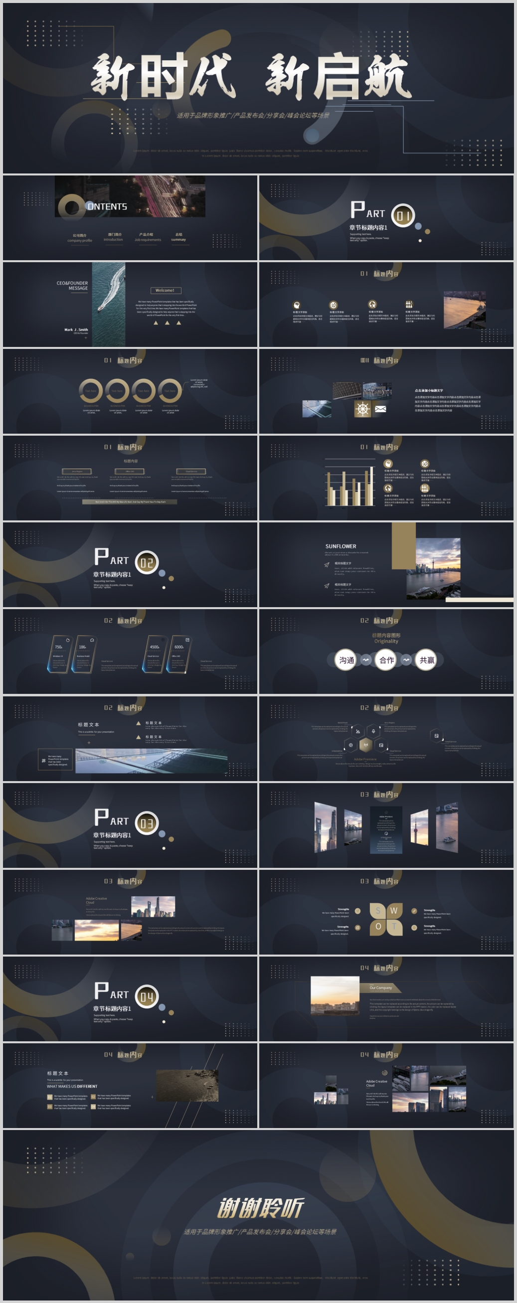黑金大气商务科技新时代启航项目路演演讲宽屏ppt模板