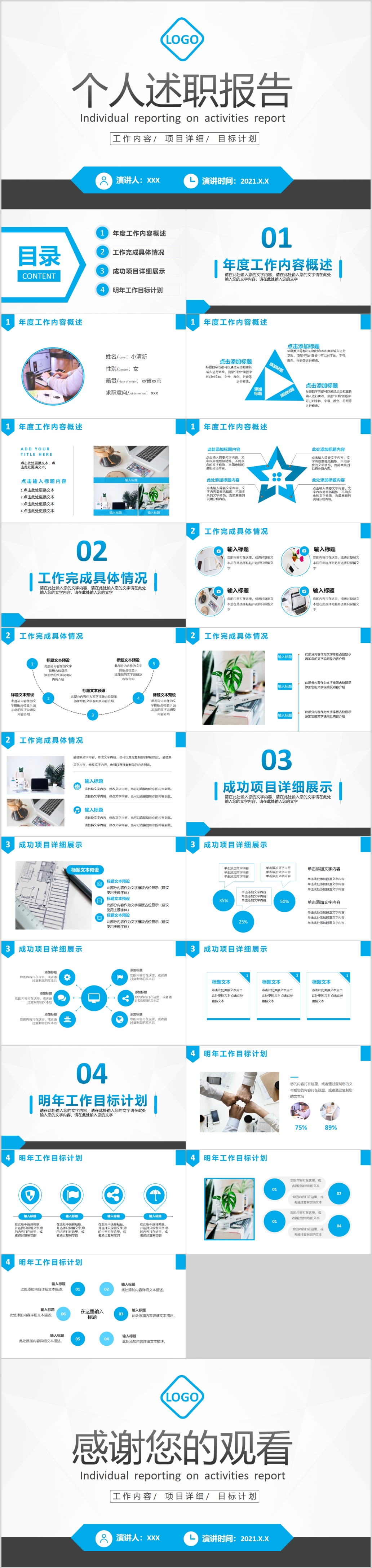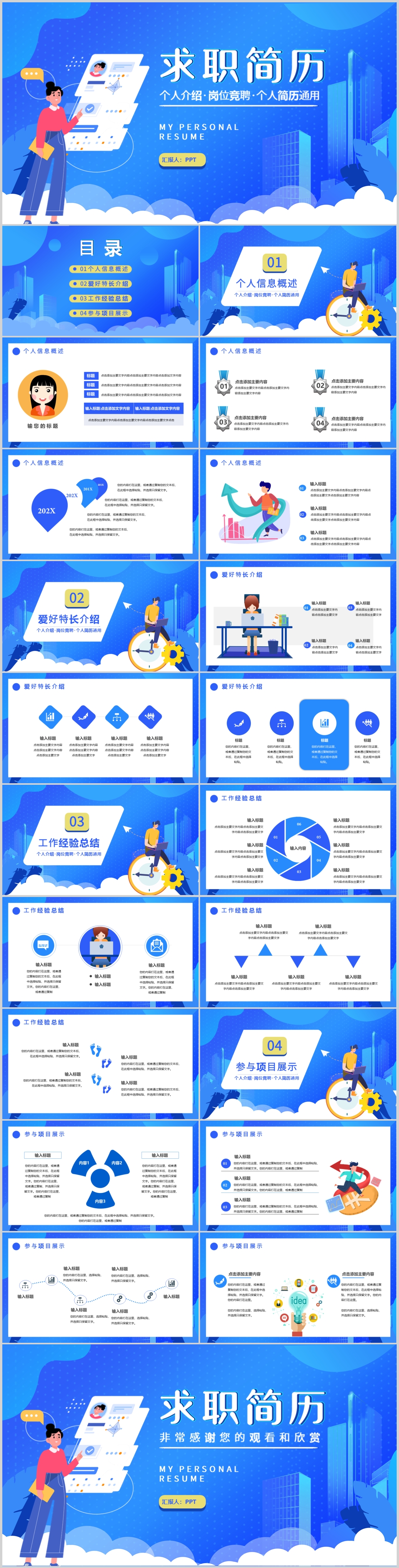 蓝色个人述职报告求职简历自我介绍工作汇报PPT模板