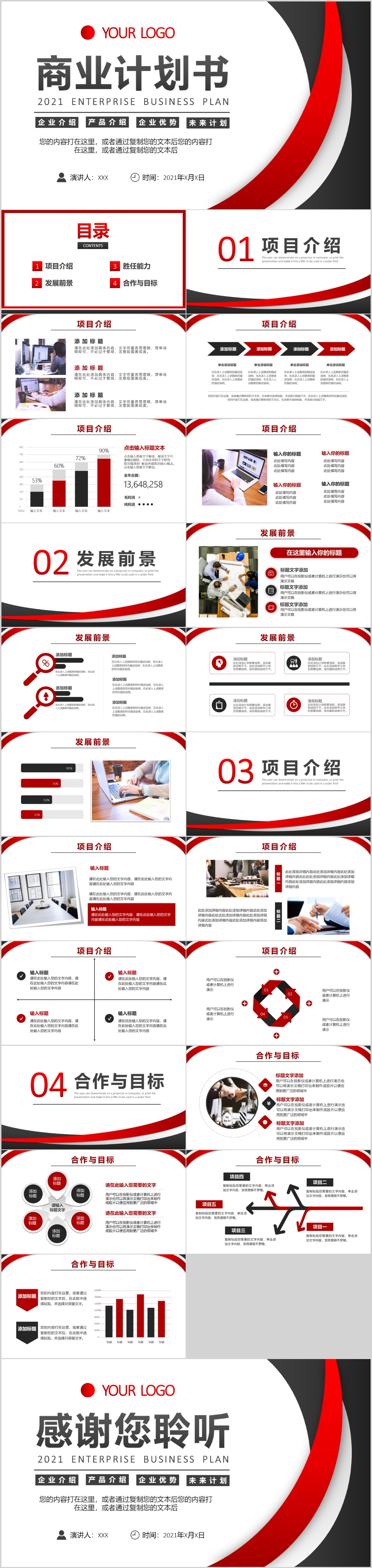红色简约沉稳高端大气企业宣传商业计划书PPT模板