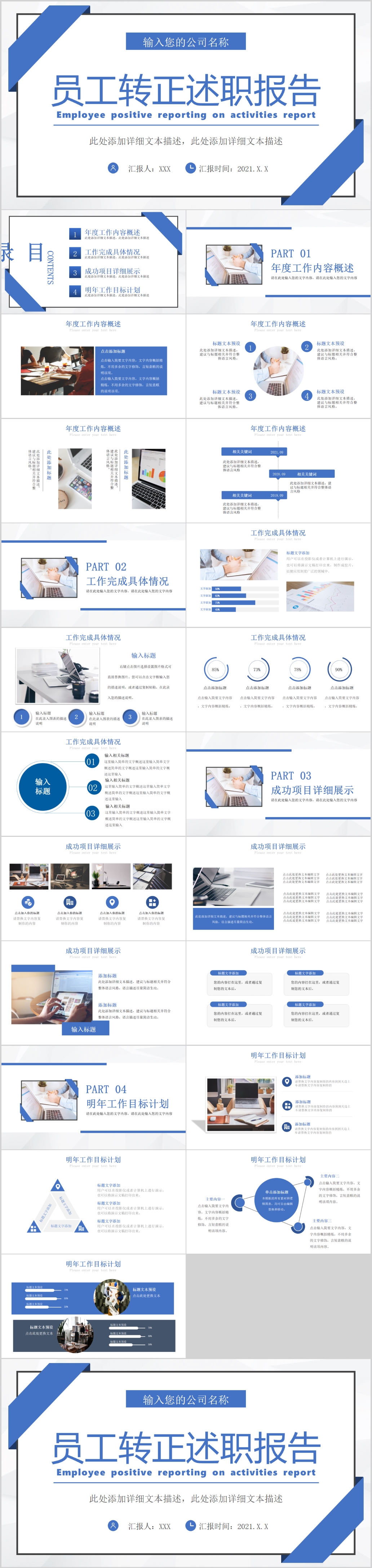 2021商务风格转正述职报告PPT模板