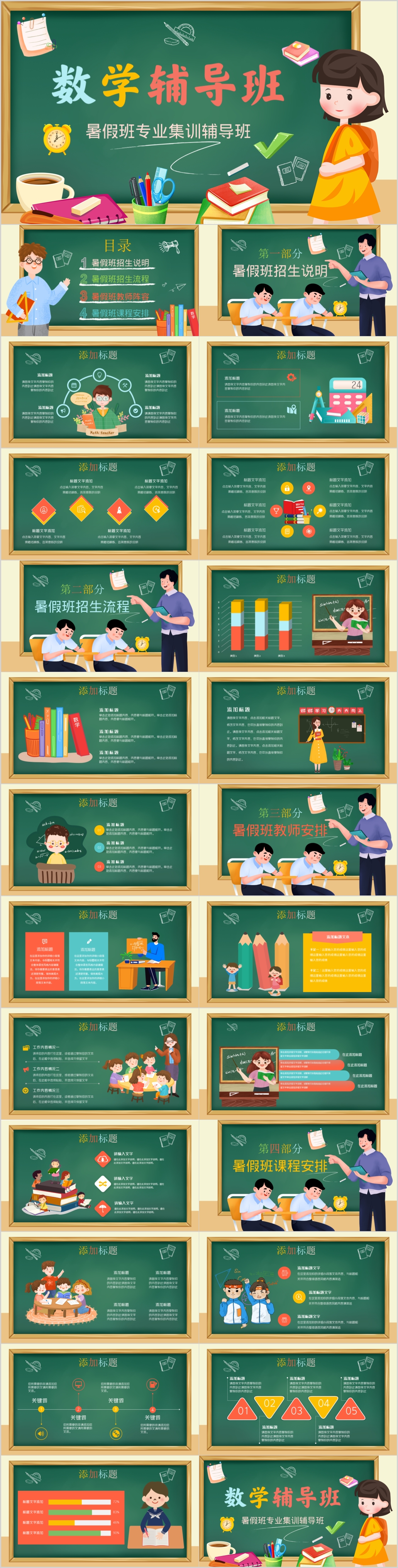卡通幼儿园中小学生暑假数学辅导班培训动态PPT模板