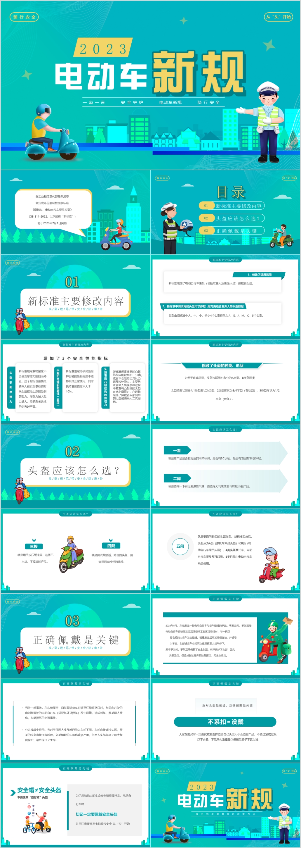 2023绿色骑行安全电动车新规交通安全培训课件PPT模板
