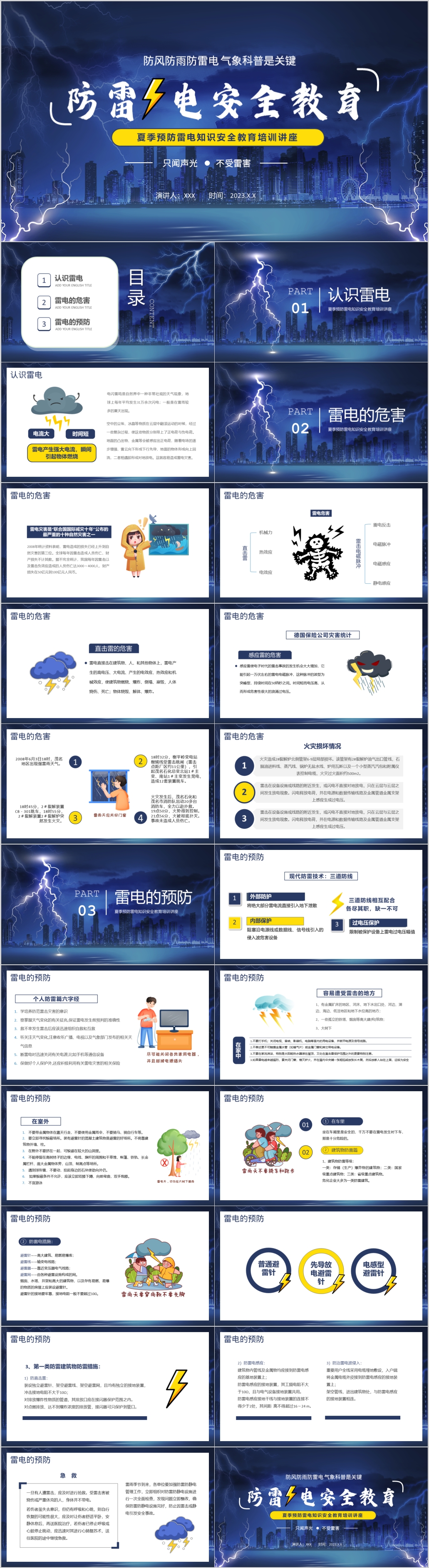 夏季防风防雨防雷电气象科普知识安全教育ppt模板