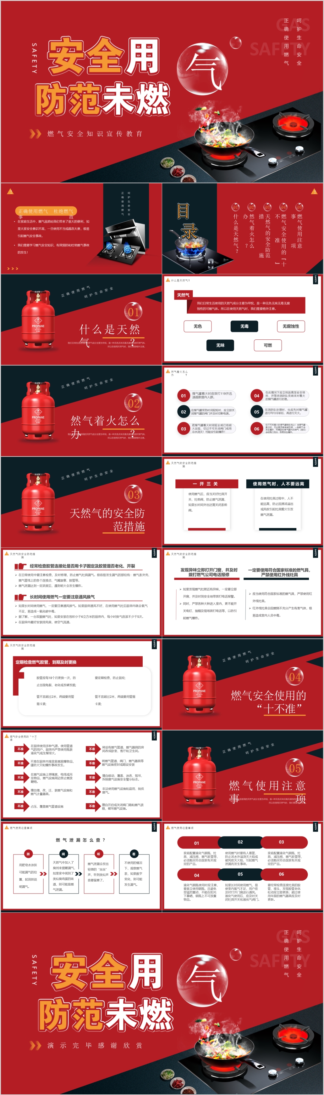 红色安全用气防范未然燃气安全知识宣传教育ppt模板
