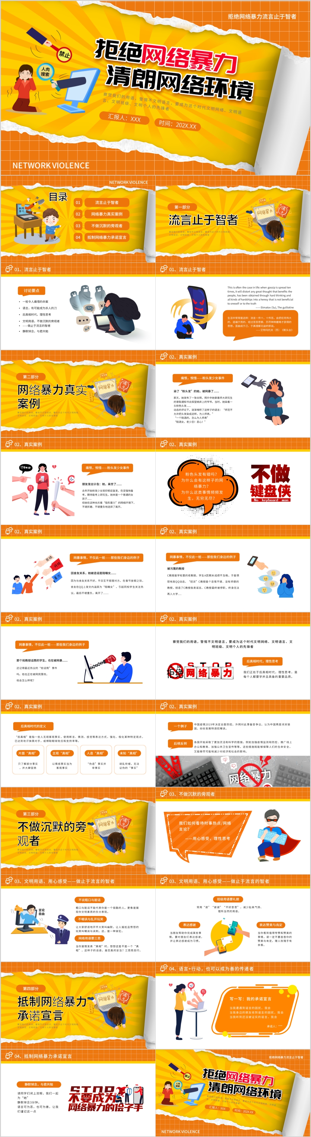 拒绝网络暴力晴朗网络环境安全教育宣传ppt模板