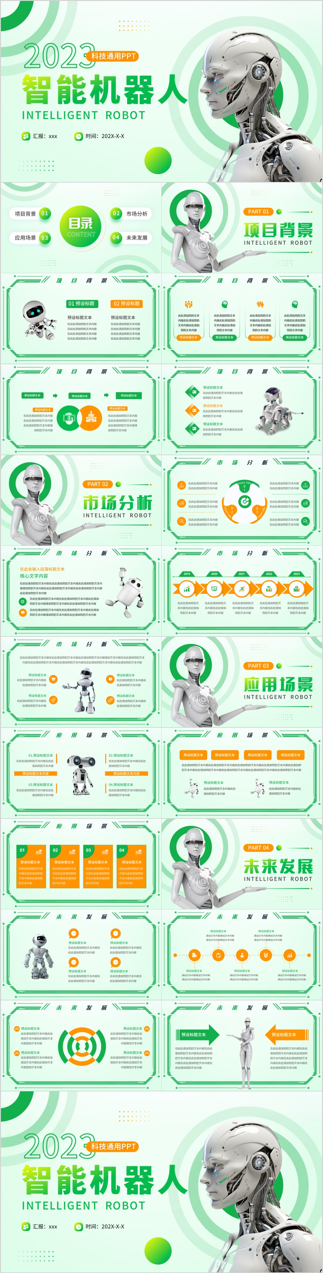绿色智能机器人AI引领智能办公项目通用PPT模版