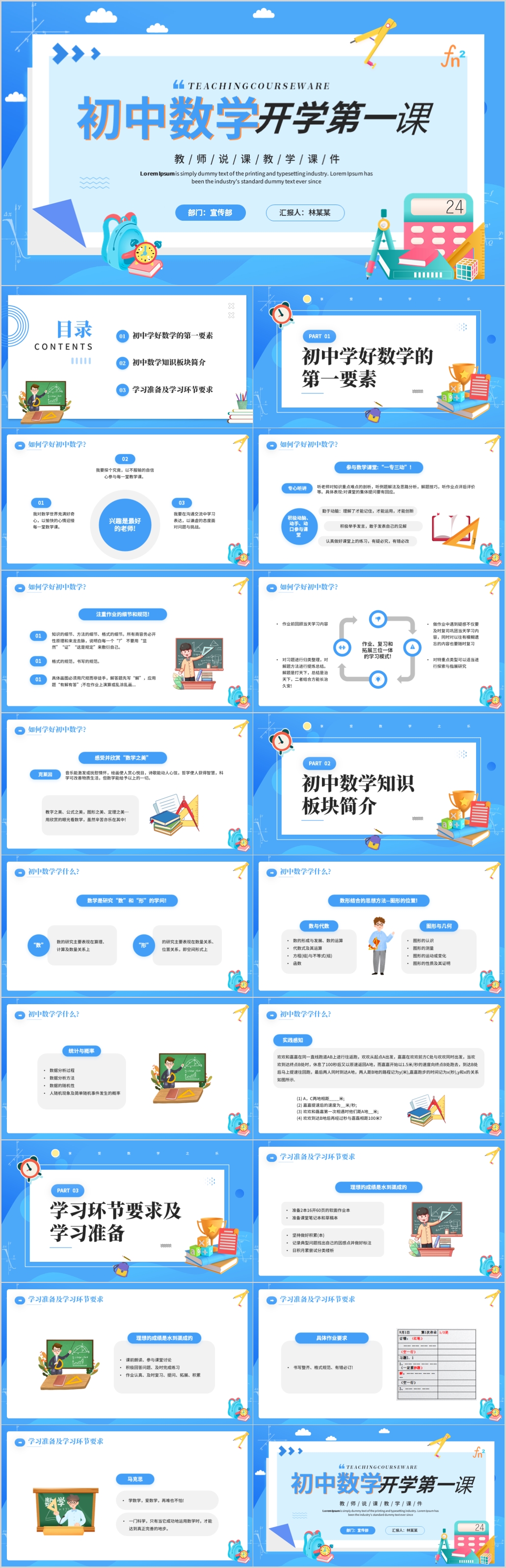 蓝色新学期新开始初中数学开学第一课主题班会ppt模板