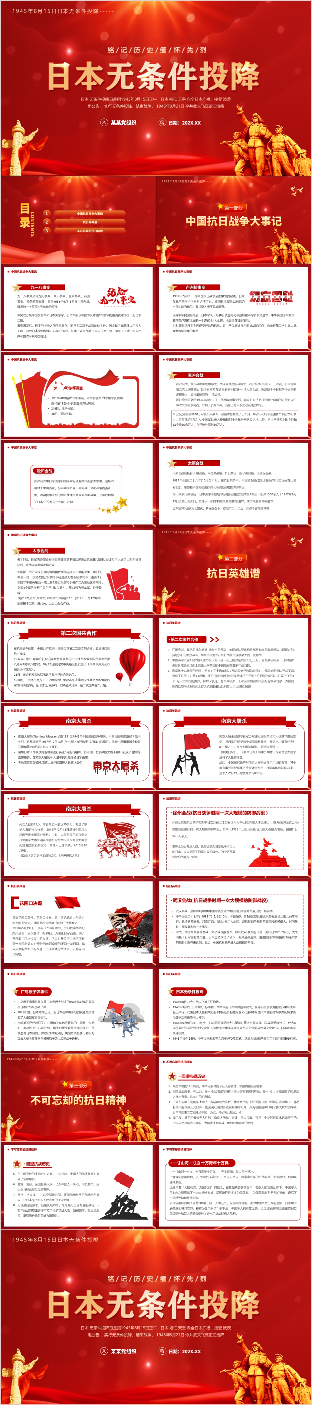 红色抗日战争胜利日本无条件投降日主题党课PPT模板