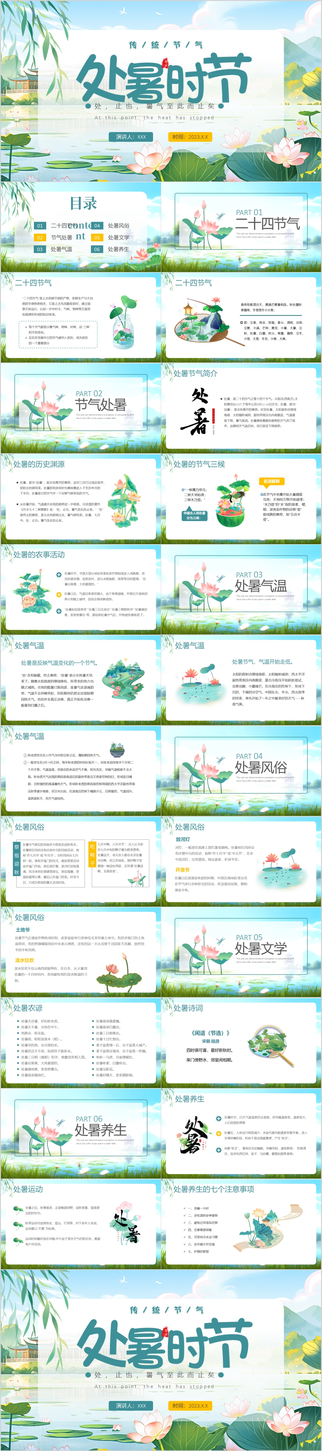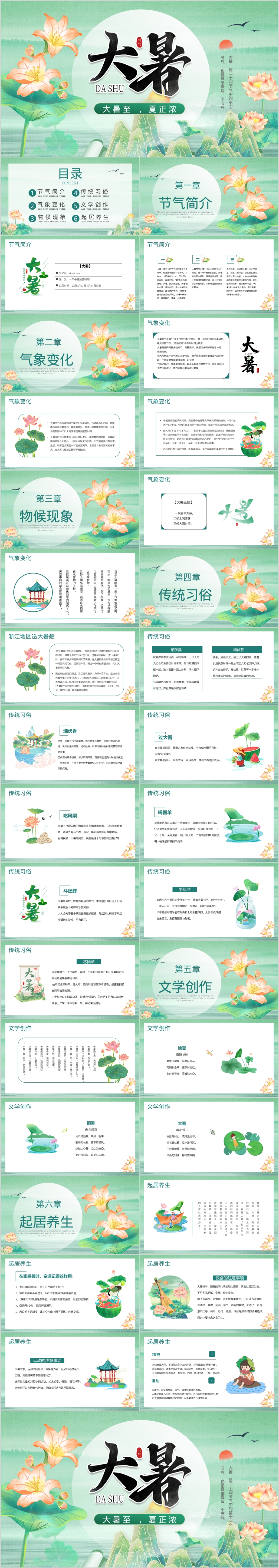 绿色简约极简清新二十四节气大暑主题传统文化ppt模板