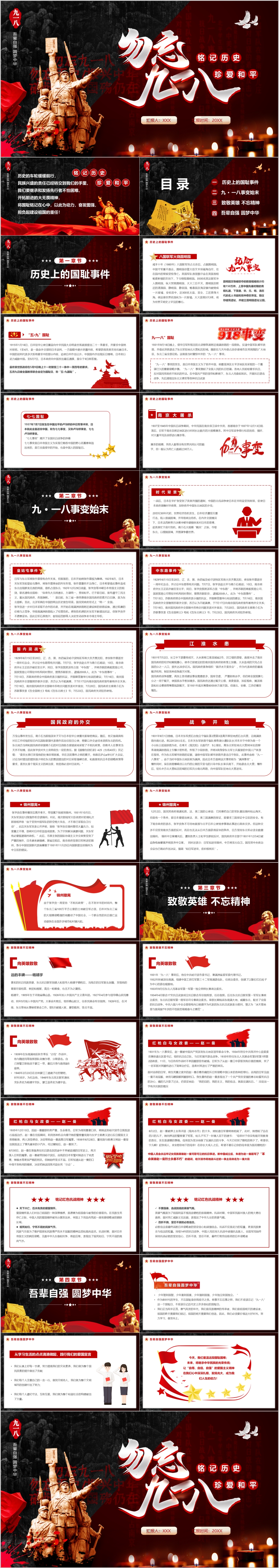 九一八事变纪念日勿忘国耻党政党课PPT模板