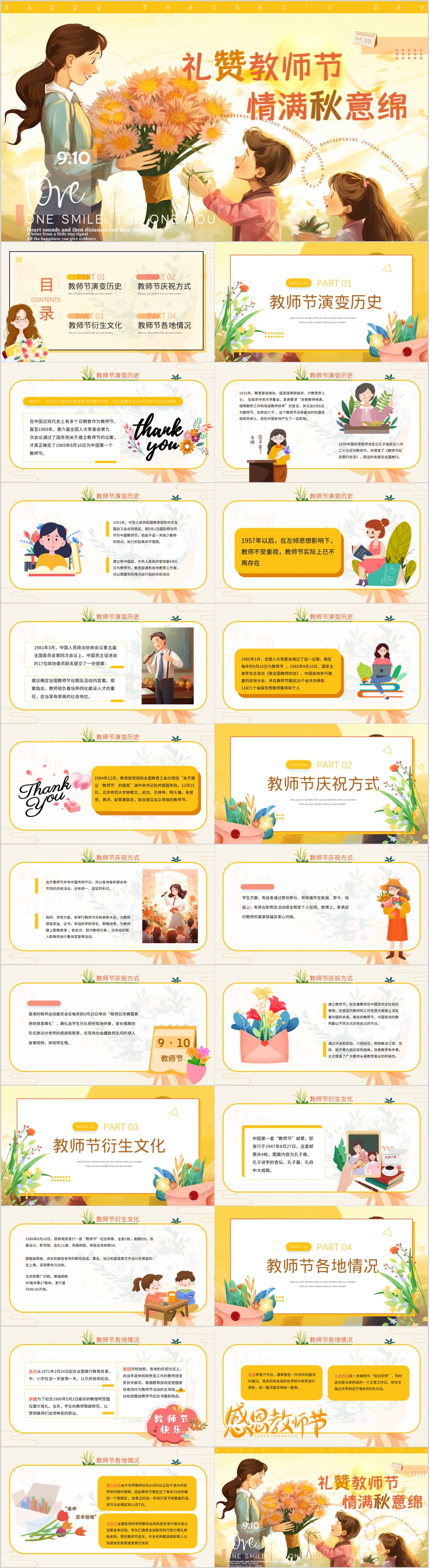 礼赞教师节情满秋意绵感恩教师节文化墙主题课件PPT模板