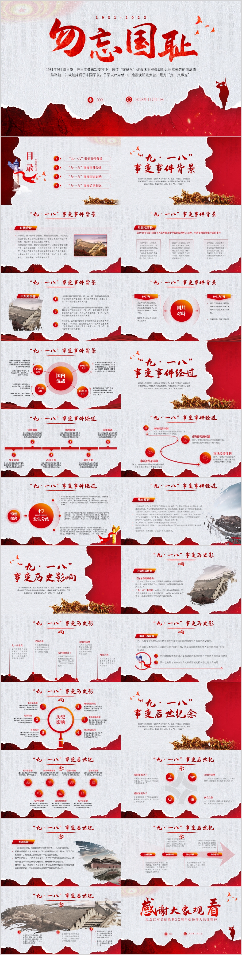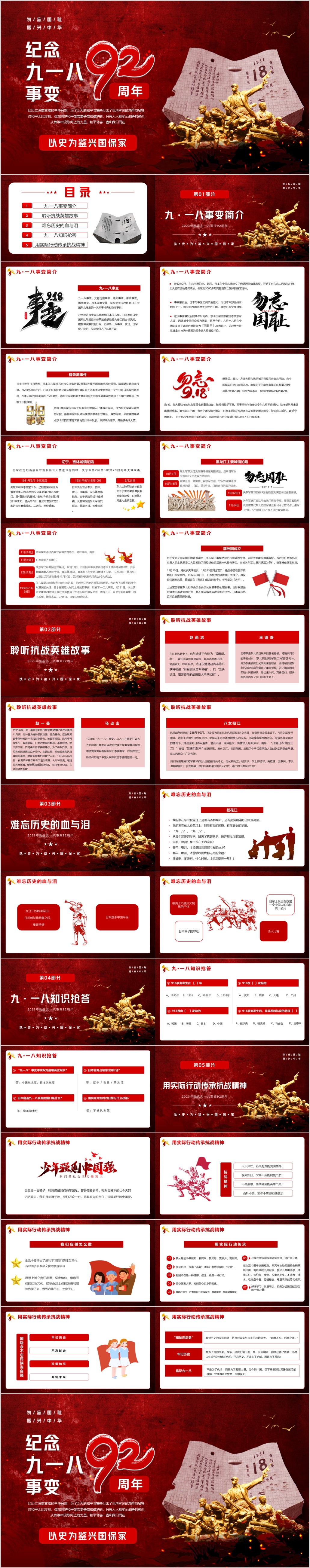 红色勿忘国耻九一八事变92周年纪念日党课PPT模板