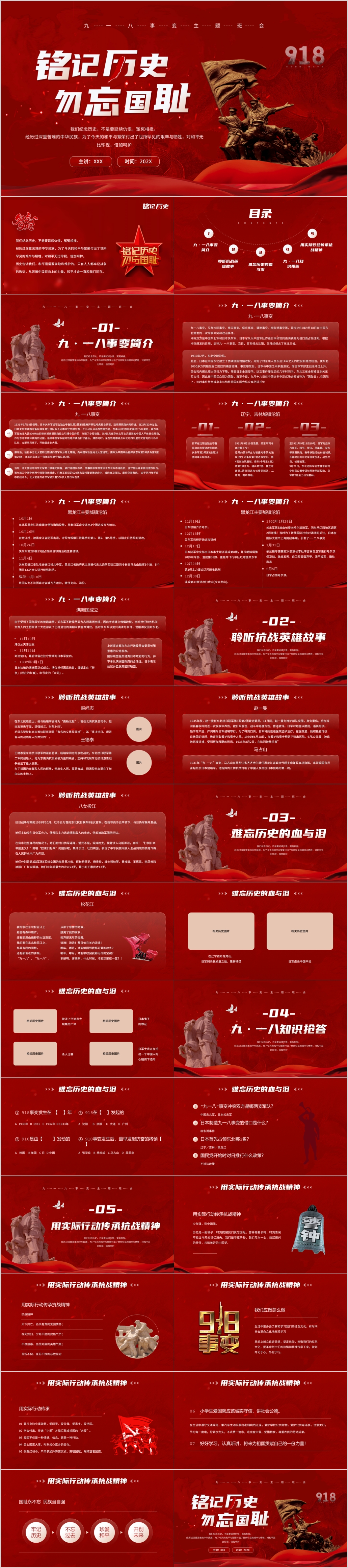 纪念918铭记历史勿忘国耻九一八事变纪念日党课PPT模板