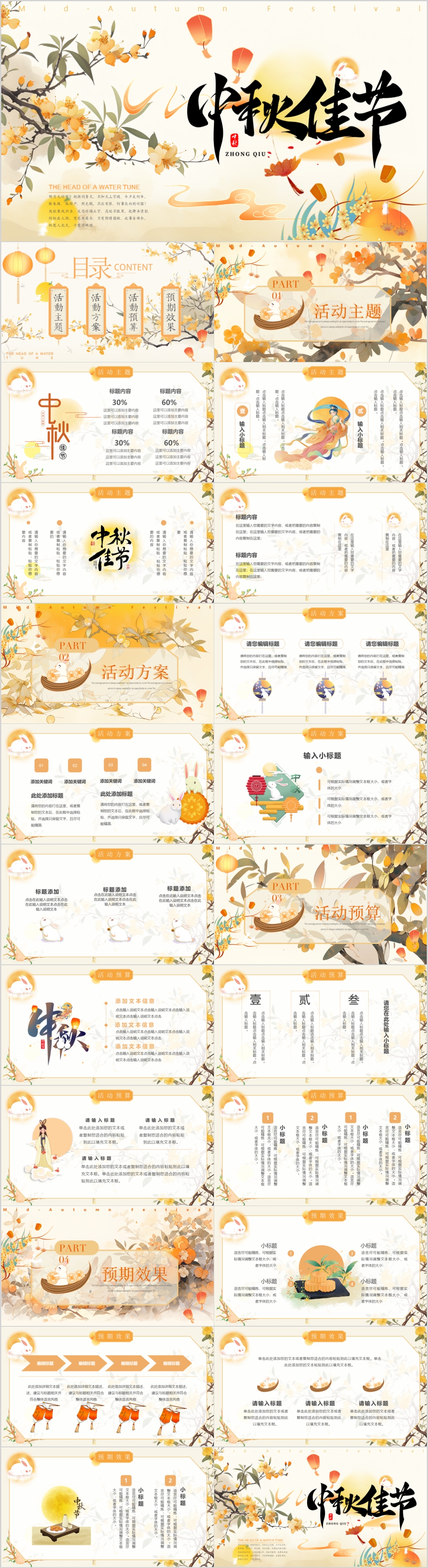 中国风鎏金花好月圆中秋节活动策划通用PPT模板