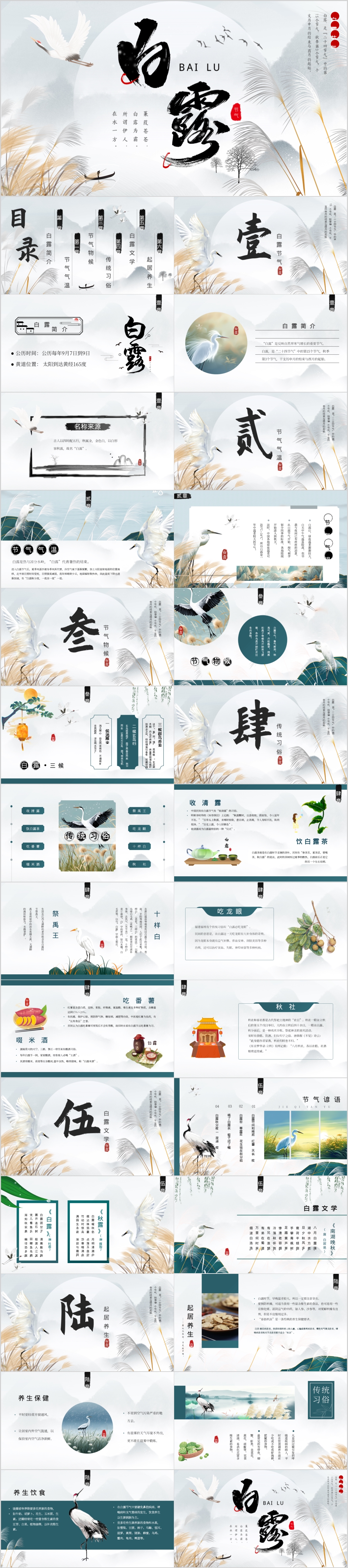 中国风二十四节气白露节气主题班会普及知识PPT模板