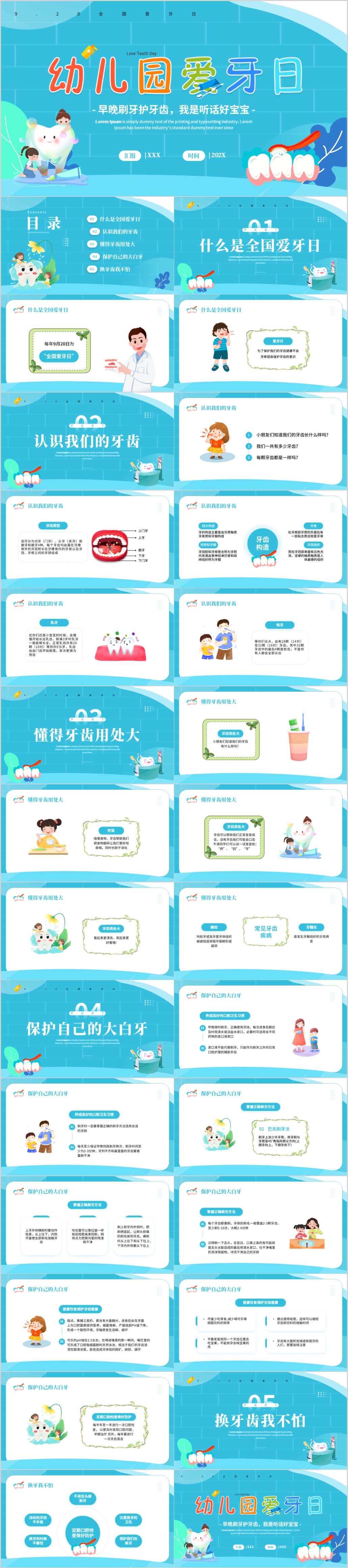 蓝色清新爱牙日牙齿保健口腔护理PPT模板