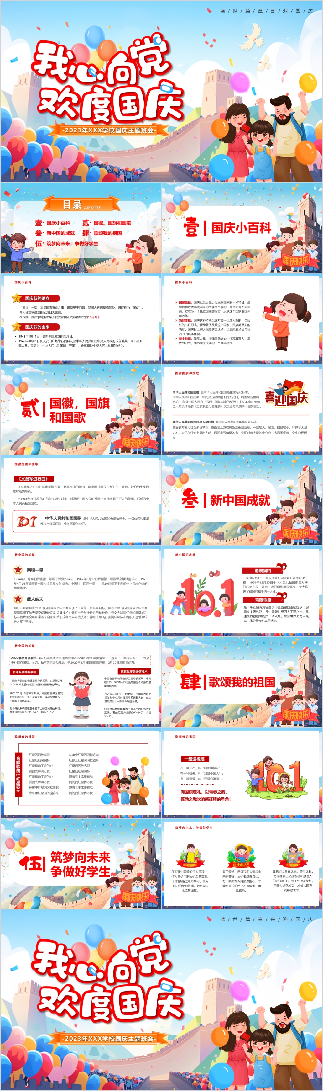2023我心向党欢度国庆74周年主题班会课件PPT模板