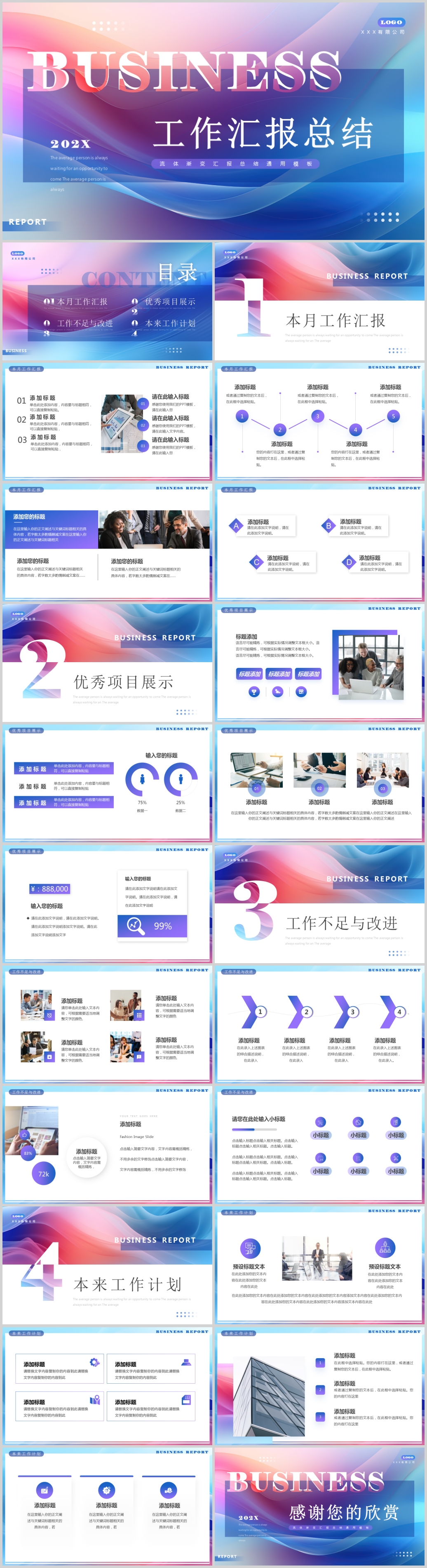 蓝色商务项目工作总结工作汇报工作计划ppt模板