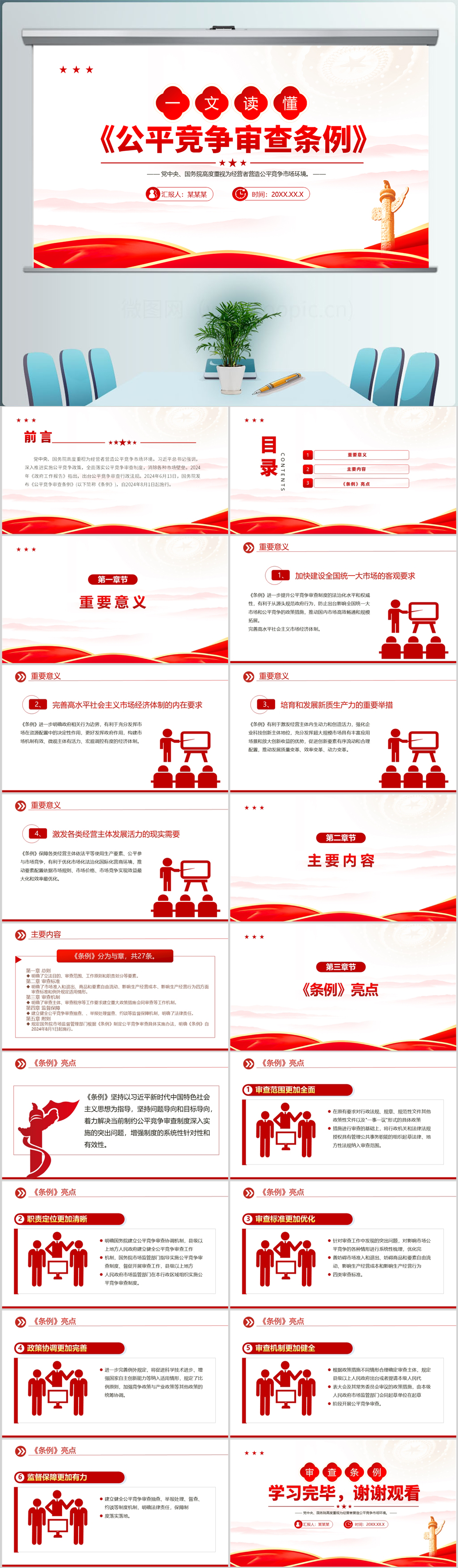 一文读懂《公平竞争审查条例》学习解读党课PPT课件模板(内含WORD演讲稿)