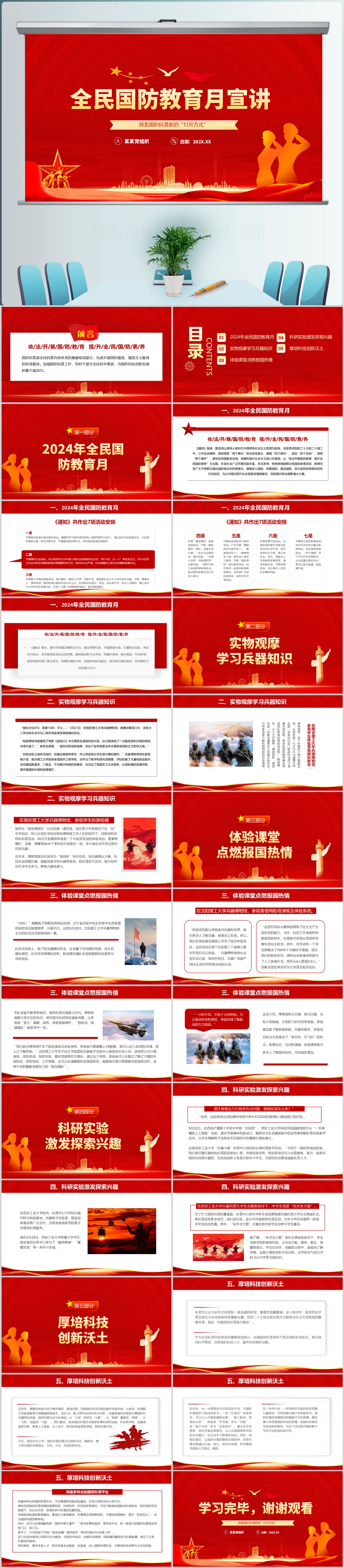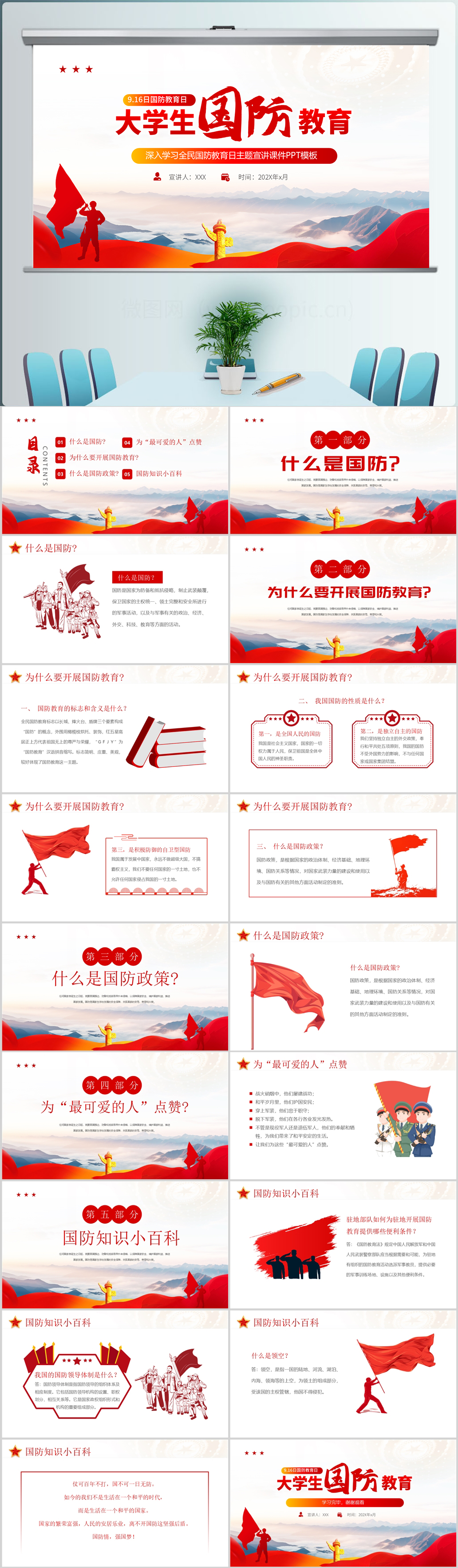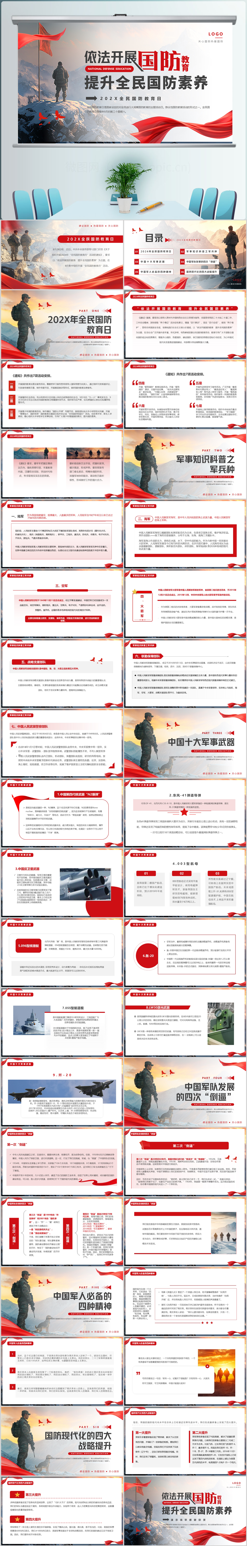 2024全民国防教育日主题宣传党课ppt模板