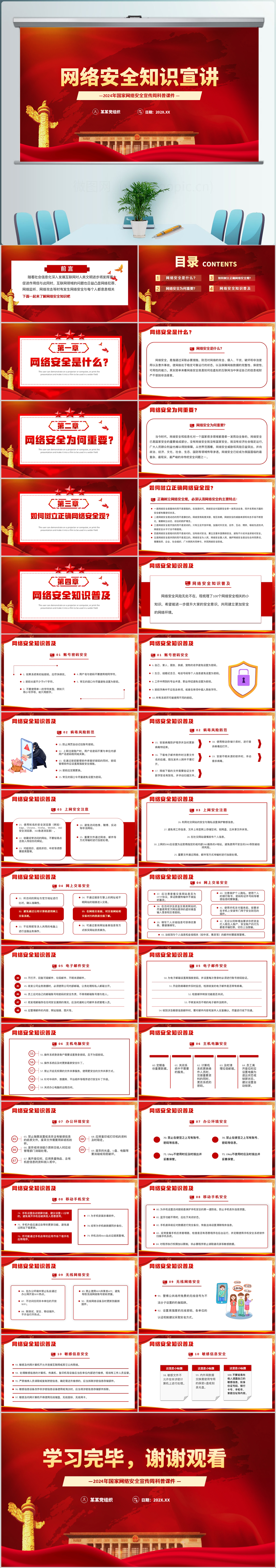 红色网络安全知识普及宣讲主题党课ppt模板