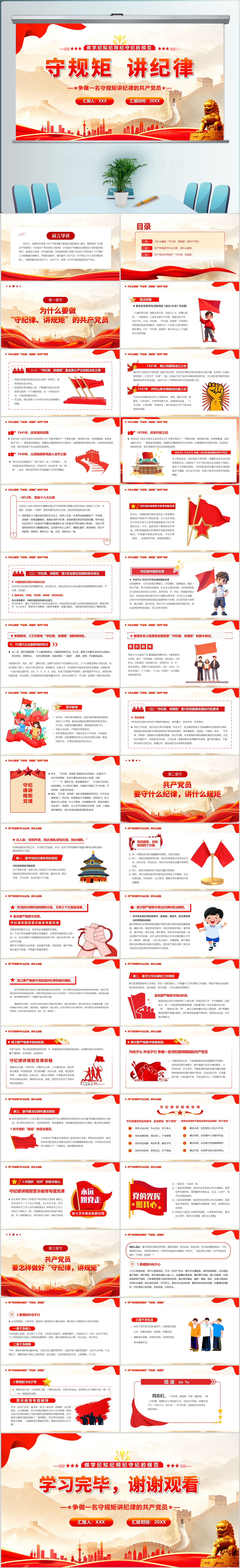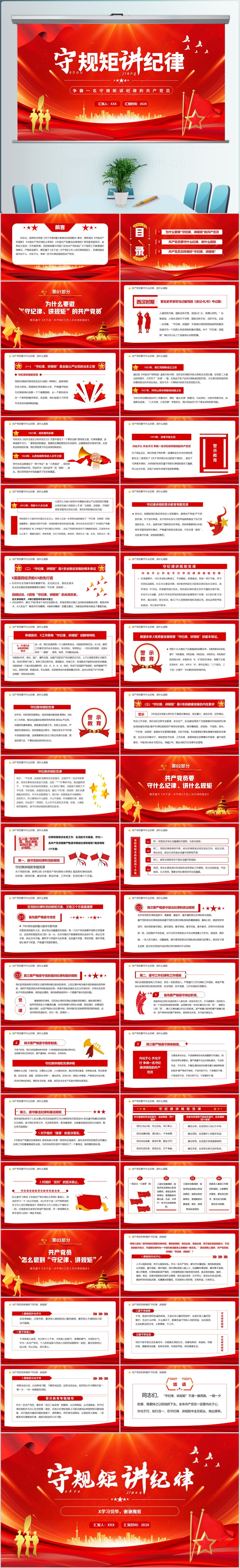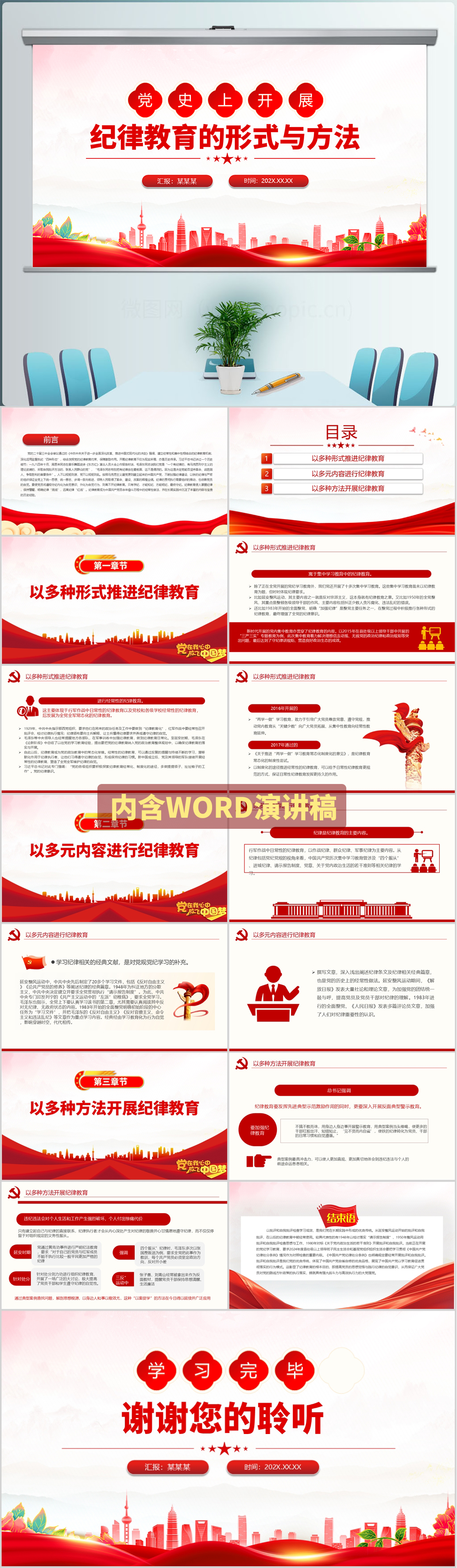 党政风党史上开展纪律教育的形式与方法党课课件PPT模板(内含WORD演讲稿)