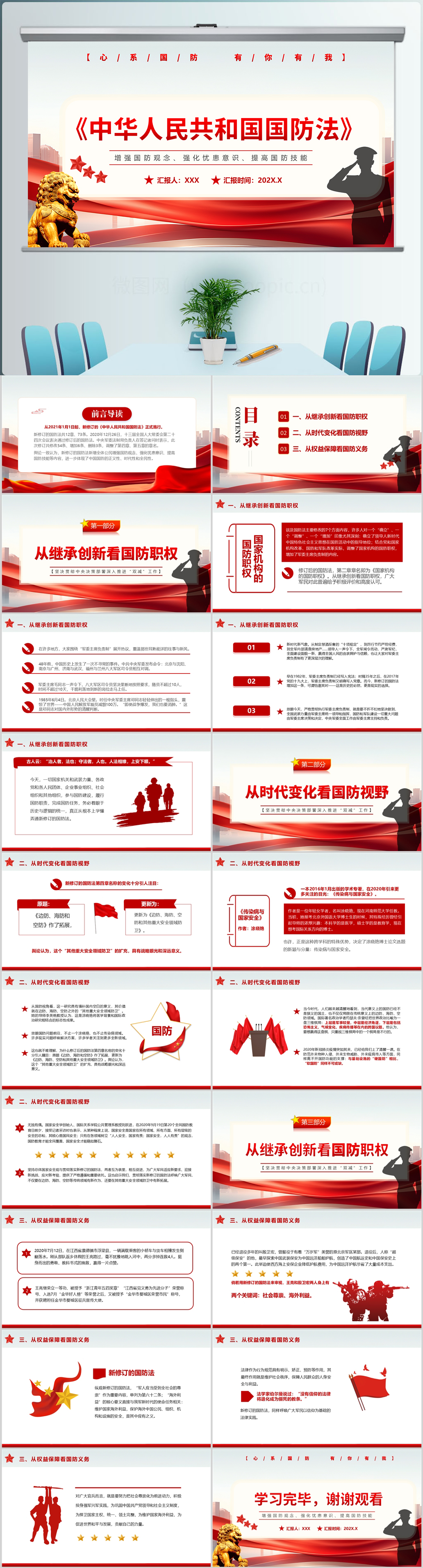 从三大视角解读国防法提高国防教育日党课ppt模板