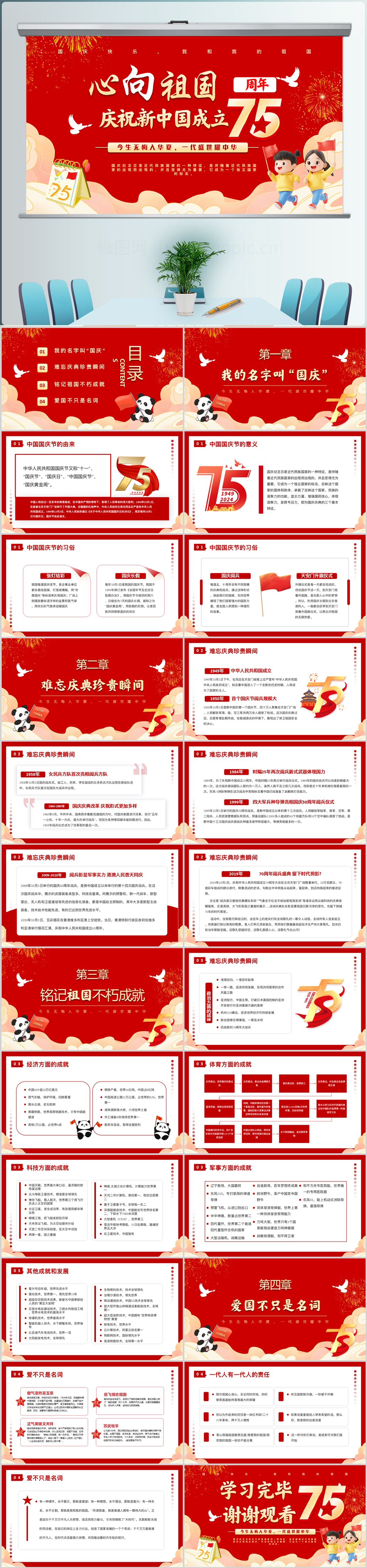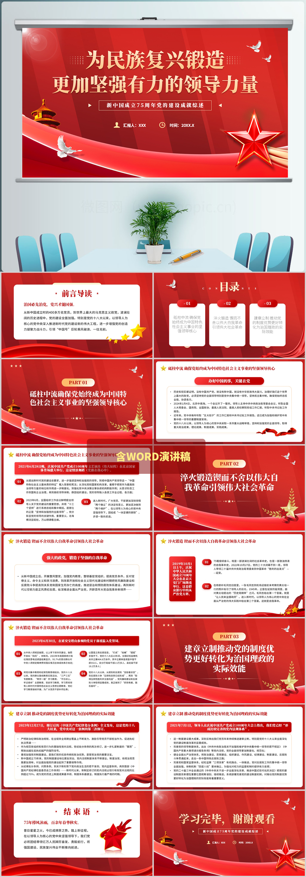 2024年新中国成立75周年党的建设成就综述党课ppt模板(内含WORD演讲稿)