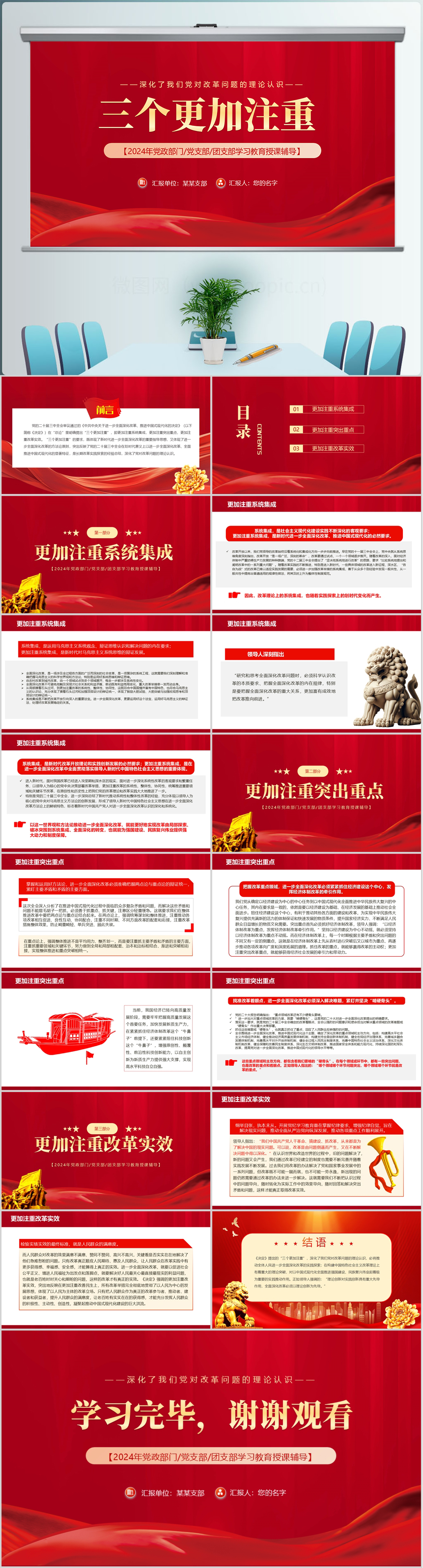 深化了解“三个更加注重”改革实效改革问题的理论认识党课ppt模板