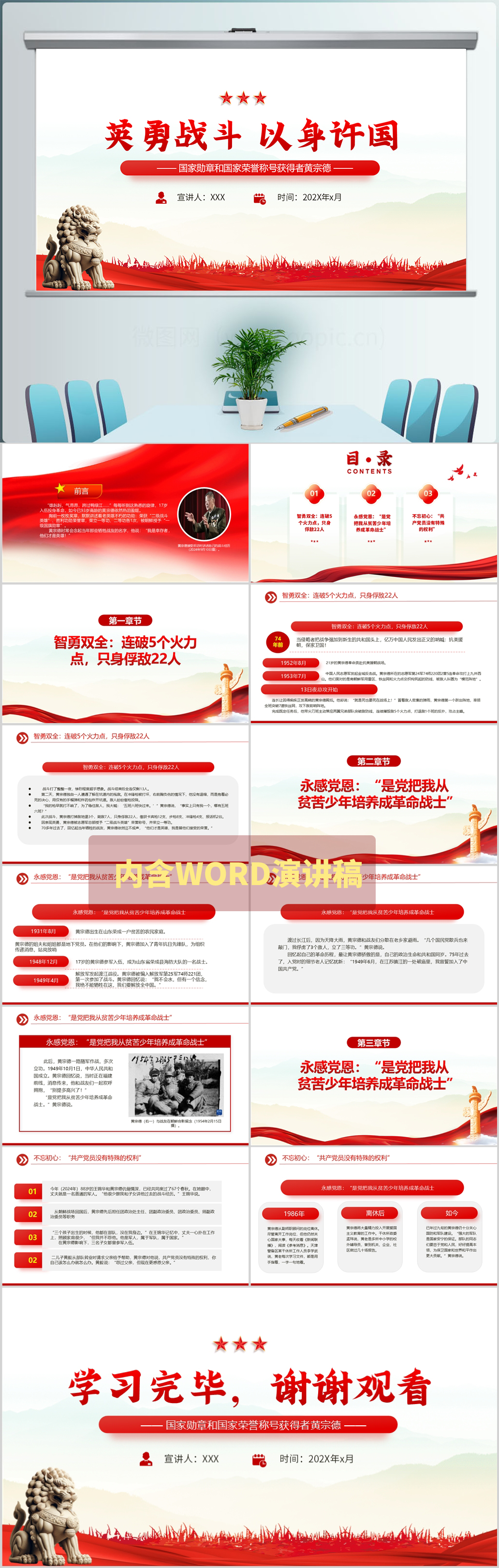 国家勋章和国家荣誉称号获得者黄宗德英勇战斗以身许国党课PPT课件(内含WO