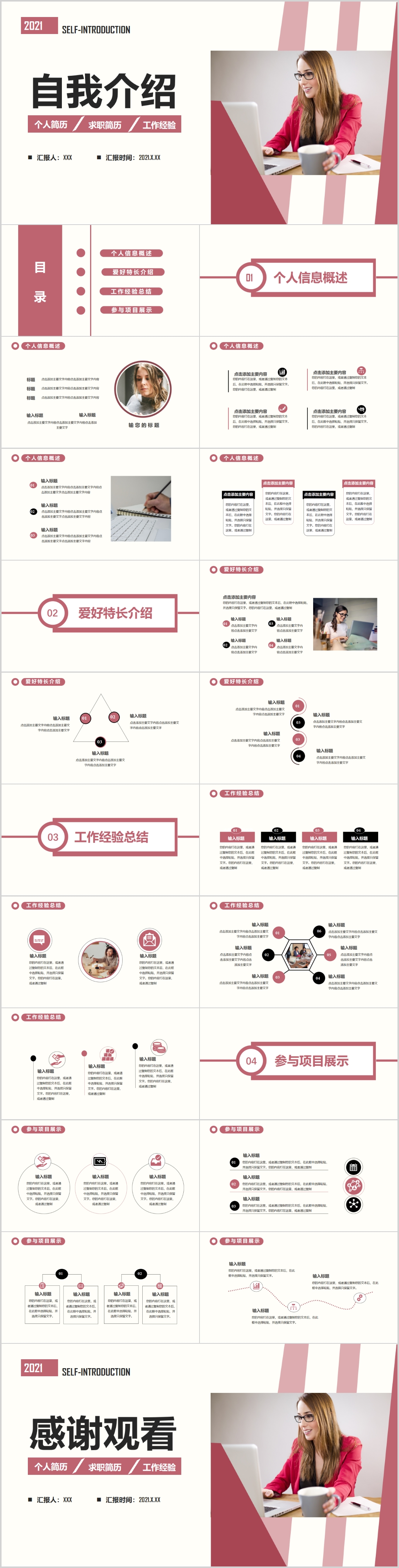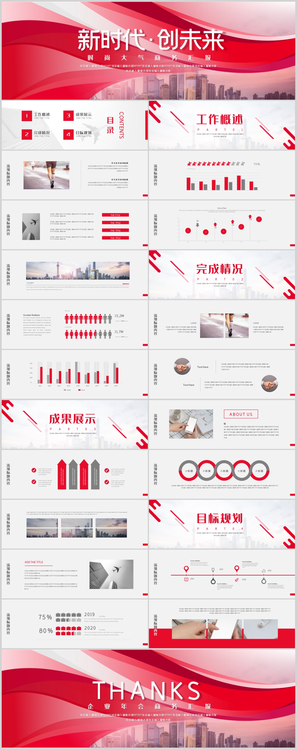 2021红色时尚渐变年终总结工作计划宽屏PPT模板