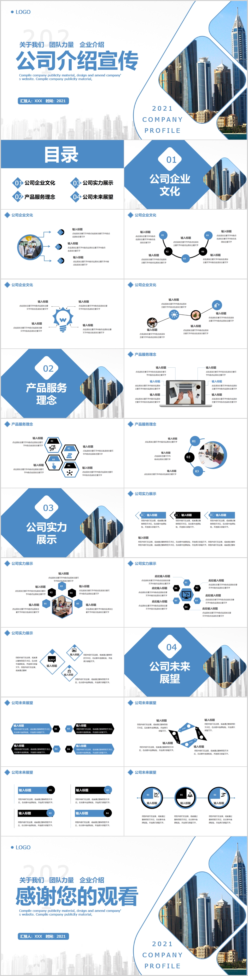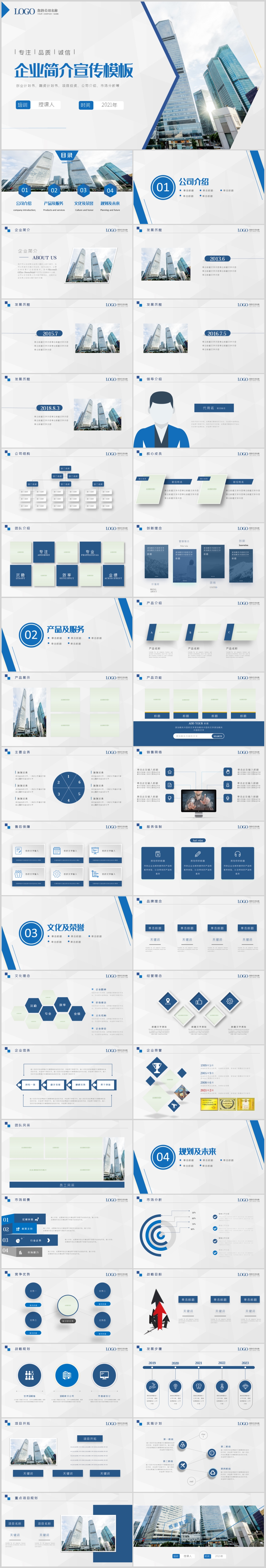 2021蓝色商务风格企业简介宣传公司产品介绍PPT模板
