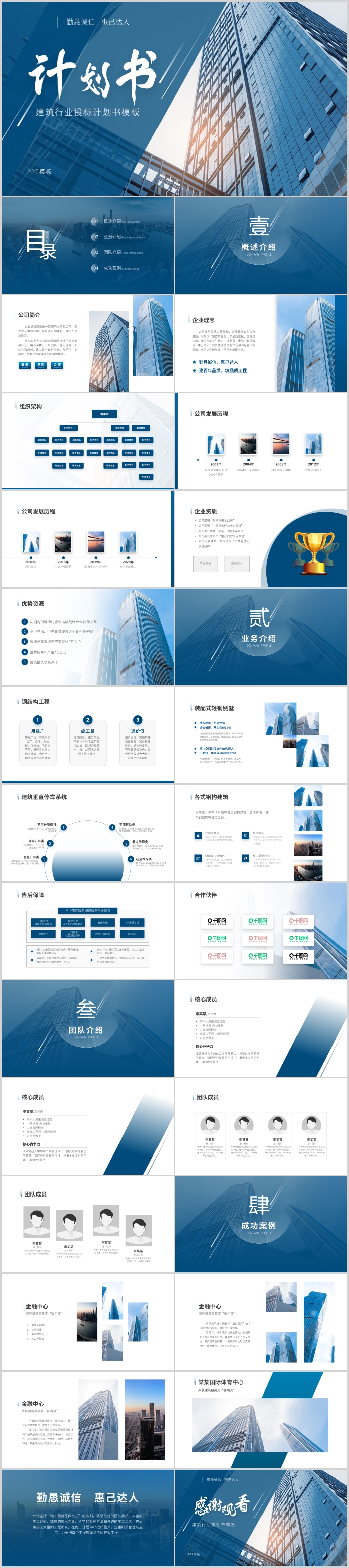 蓝色建筑工程施工队建筑设计通用规划工作总结汇报PPT模板