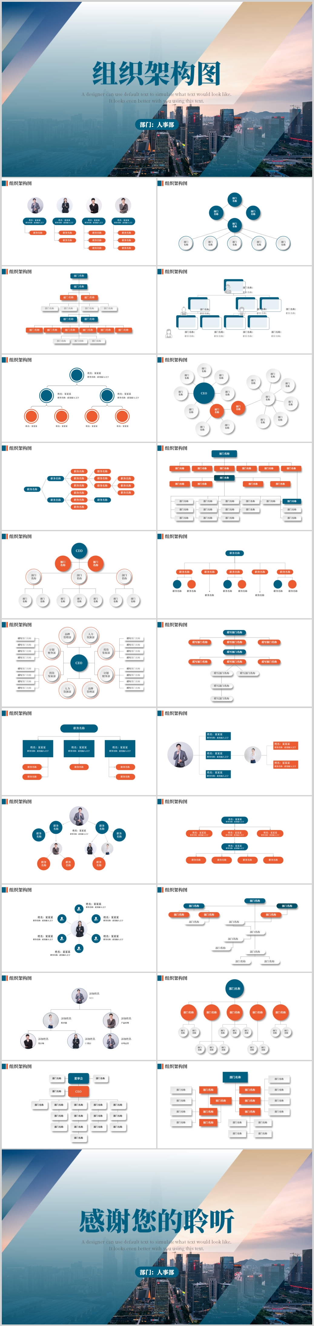 扁平化时尚大气企业组织架构图ppt模板商务