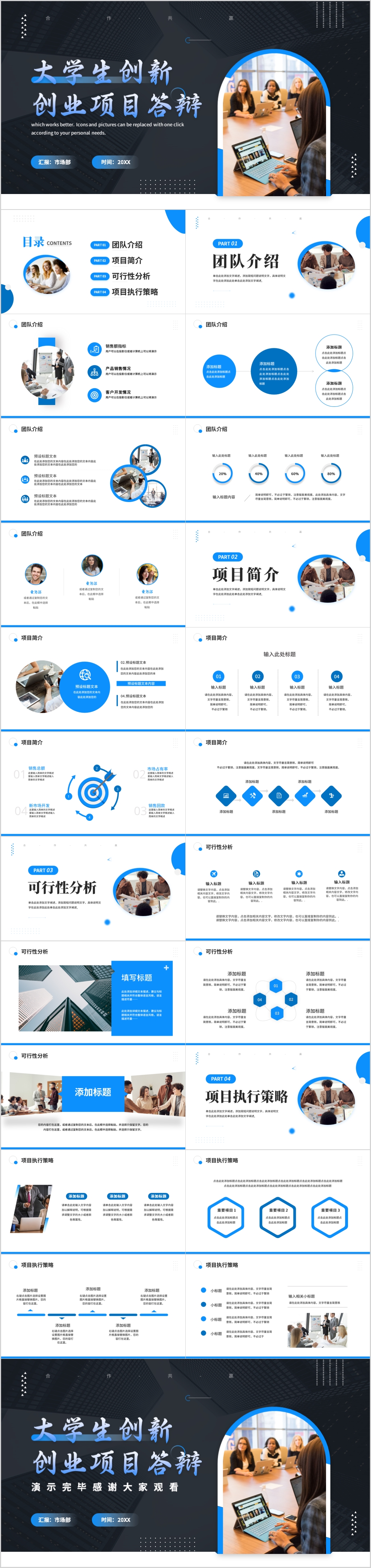 简约几何大学生创新创业论文项目答辩比赛通用ppt模板