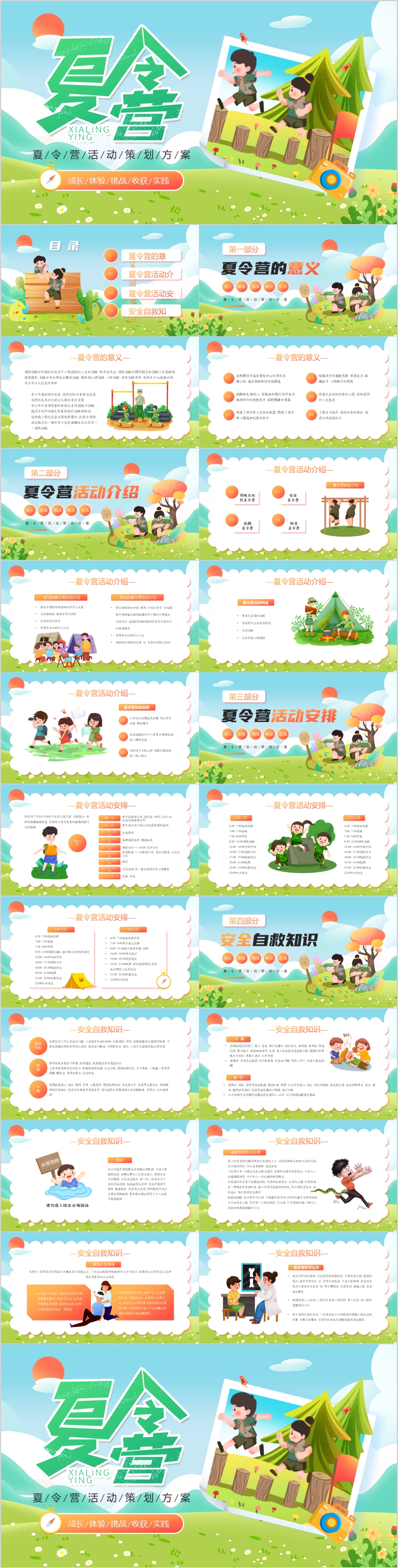 夏天小清新插画风暑期夏令营活动PPT模板
