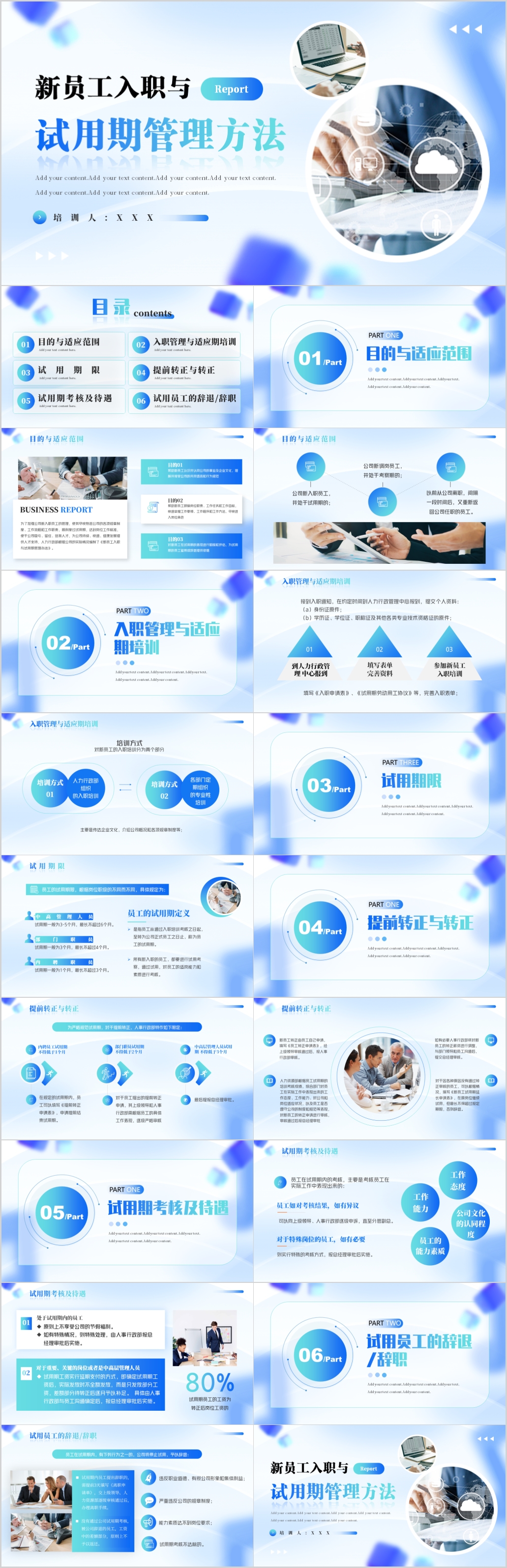 蓝色渐变简约新员工入职与试用期管理办法PPT模板