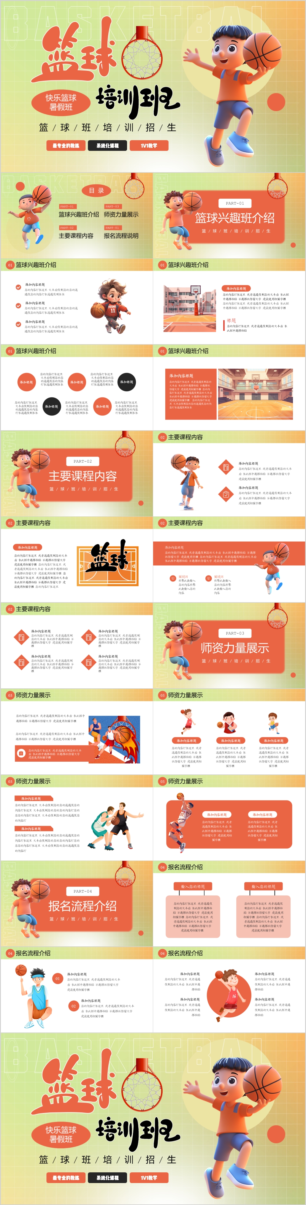 卡通快乐篮球暑假班招生计划课件PPT模板
