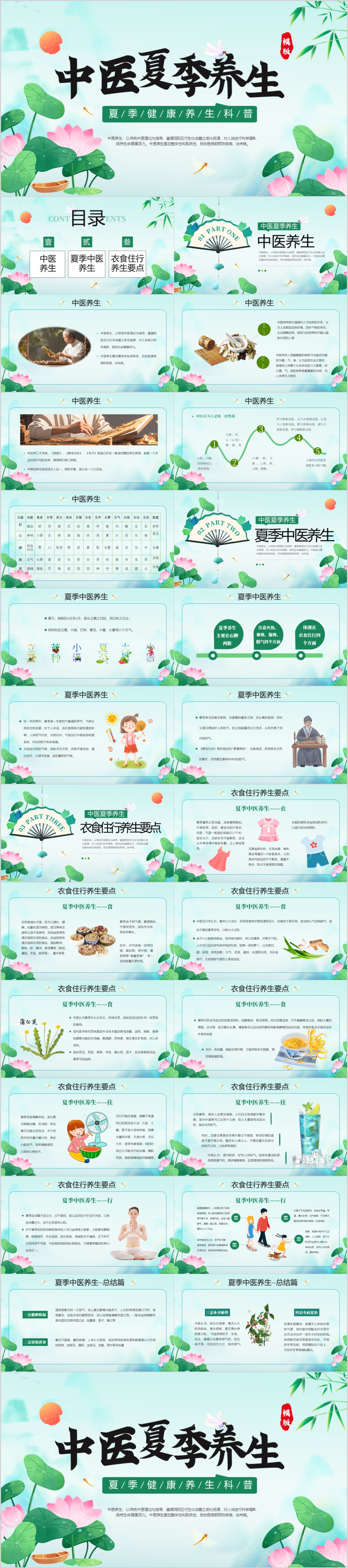 中国风清新中医夏季养生讲座食疗PPT模板